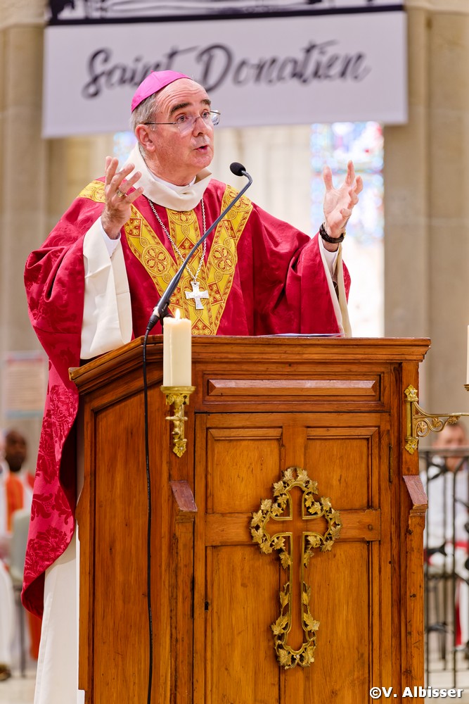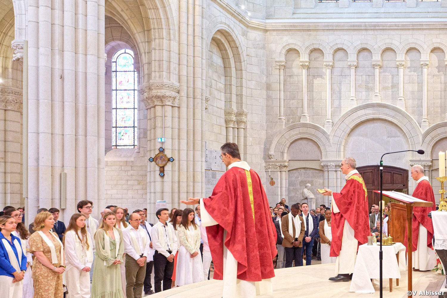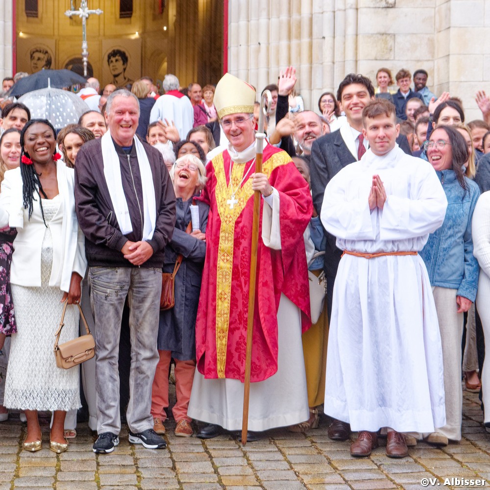 Samedi 7 juin 2025, ils étaient 243 adultes, réunis à la basilique Saint Donatien, entourés de leurs familles et accompagnateurs, pour recevoir le sacrement de confirmation. Il ne s’agit pas pour eux de confirmer leur foi, mais de recevoir « une grande énergie intérieure qui va nous donner l’élan et le courage de sortir. Pour nous autres, les disciples de Jésus, cette grande énergie se nomme l’Esprit Saint.» (homélie de Mgr Percerou)