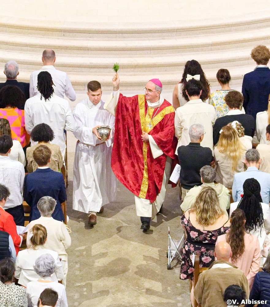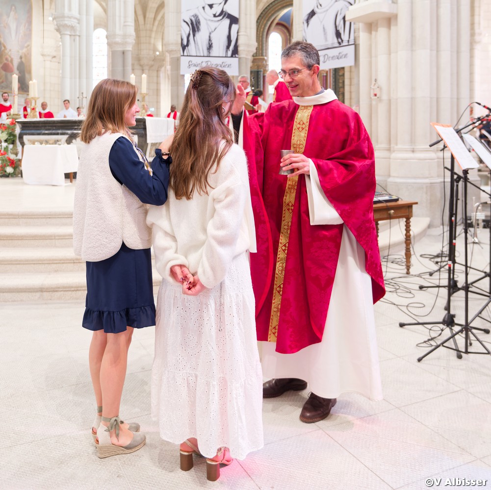 A la fin de la célébration, Mgr Percerou a également invité les adultes qui ont reçu les 3 sacrements de l’initiation à Pâques à rejoindre les nouveaux confirmés. A tous, confirmés cette année, il a adressé la bénédiction pour ceux qui partent annoncer l’Évangile.