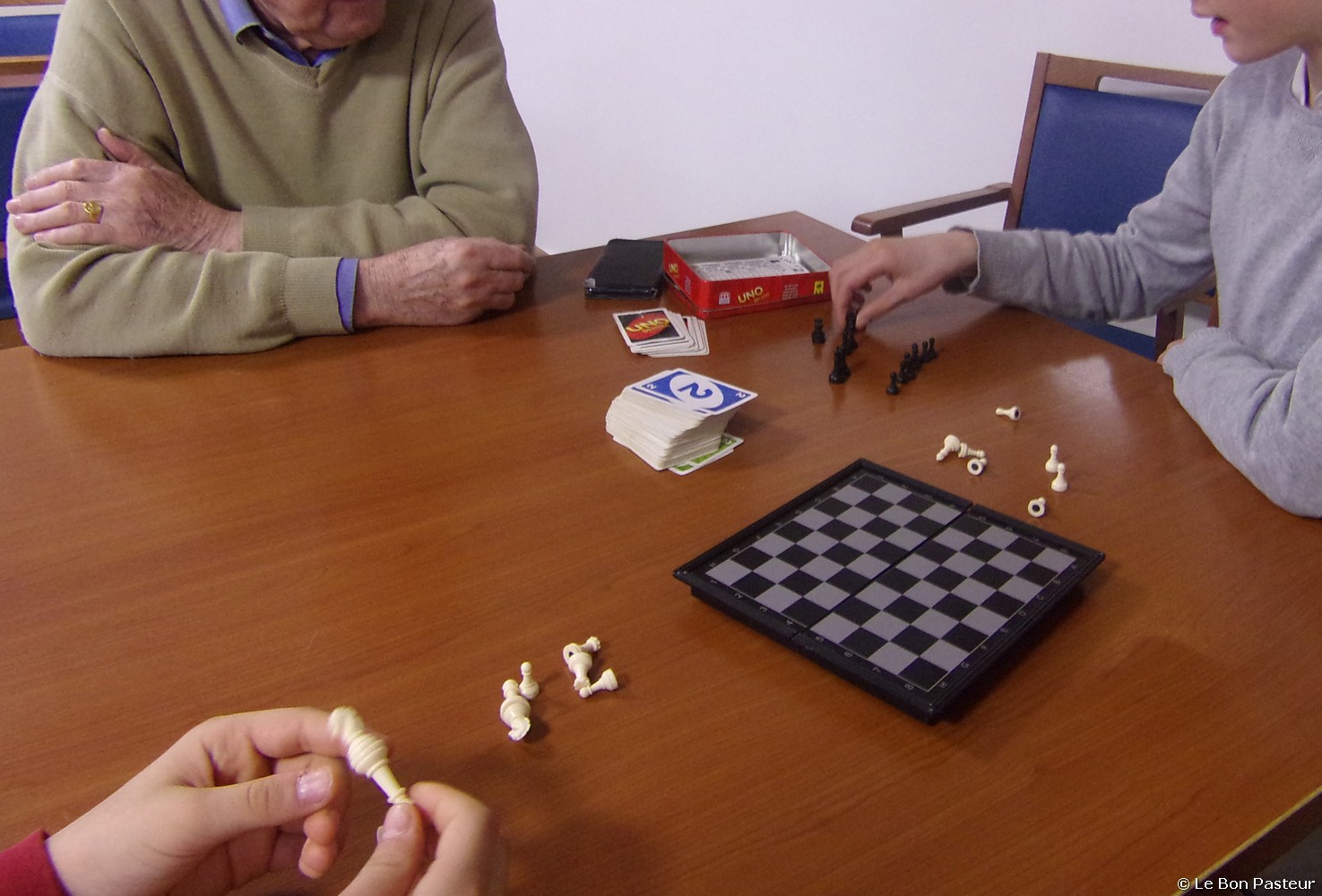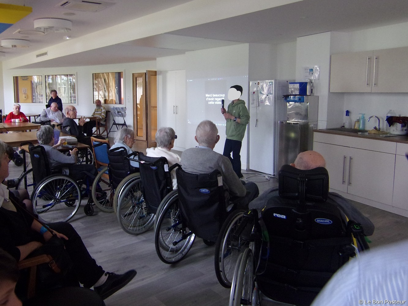 Les élèves du collège Saint Donatien sont venus partager des temps d’échanges avec les résidents dans le cadre de l’animation pastorale : discussions, jeux de société, musique, chants, retour en images de leur voyage à Rome et pour les confirmants : lecture du jour pendant la messe.