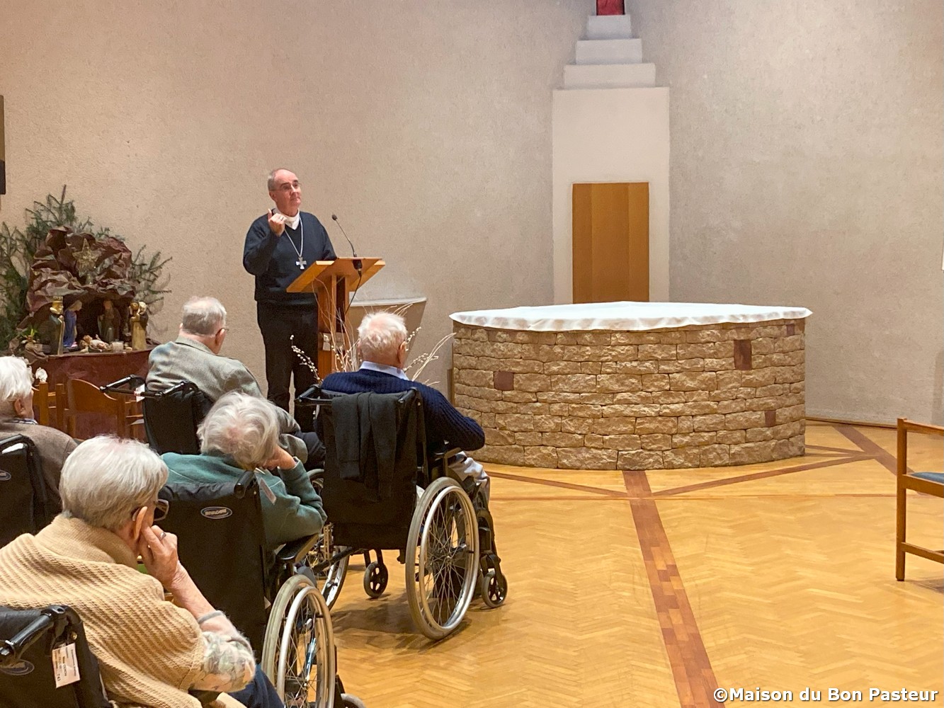 Notre évêque est venu présenter ses vœux de “Bonne année” aux résidents du Bon Pasteur et il a confié à notre prière ce qui va marquer notre diocèse en cette année 2025. Cette année est une année jubilaire où nous sommes invités à être “porteurs d’espérance”. Notre évêque nous a rappelé les différentes initiatives proposées par le diocèse pour vivre cette année jubilaire : divers pèlerinages, conférences de carême, et 2 lieux spécialement dédiés à cette année jubilaire : la Basilique Sts Donatien et Rogatien et le Calvaire de Pontchâteau.