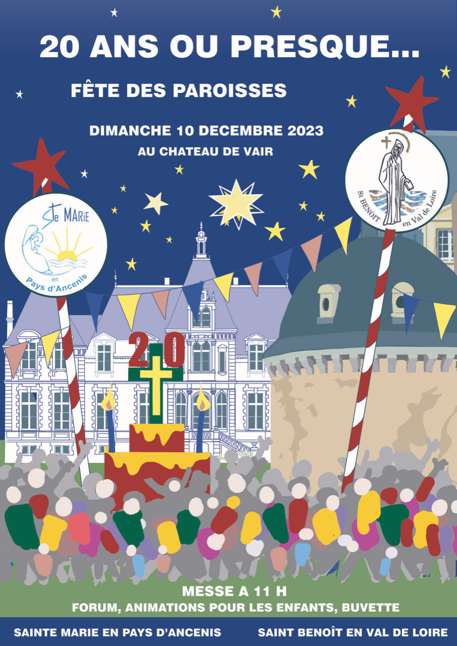 Les paroisses de Sainte-Marie-en-Pays-d’Ancenis et Saint-Benoit-en-Val-de-Loire fêtent leurs « 20 ans ou presque… » le dimanche 10 décembre 2023 au château de Vair.