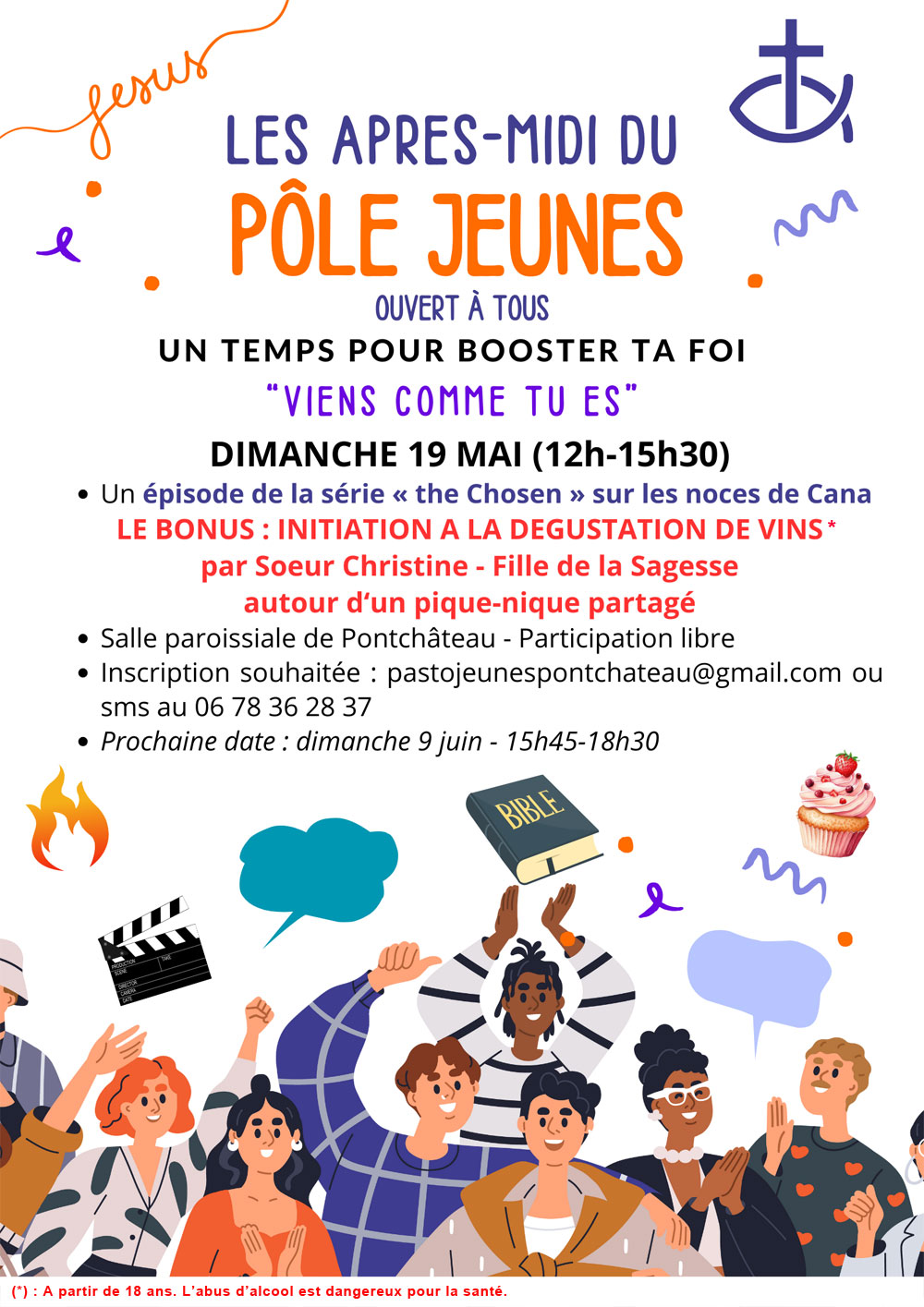 Inscription et renseignements à l’adresse suivante : pastojeunespontchateau@gmail.com ou sms au 06 78 36 28 37. Vous recevrez une confirmation après inscription.