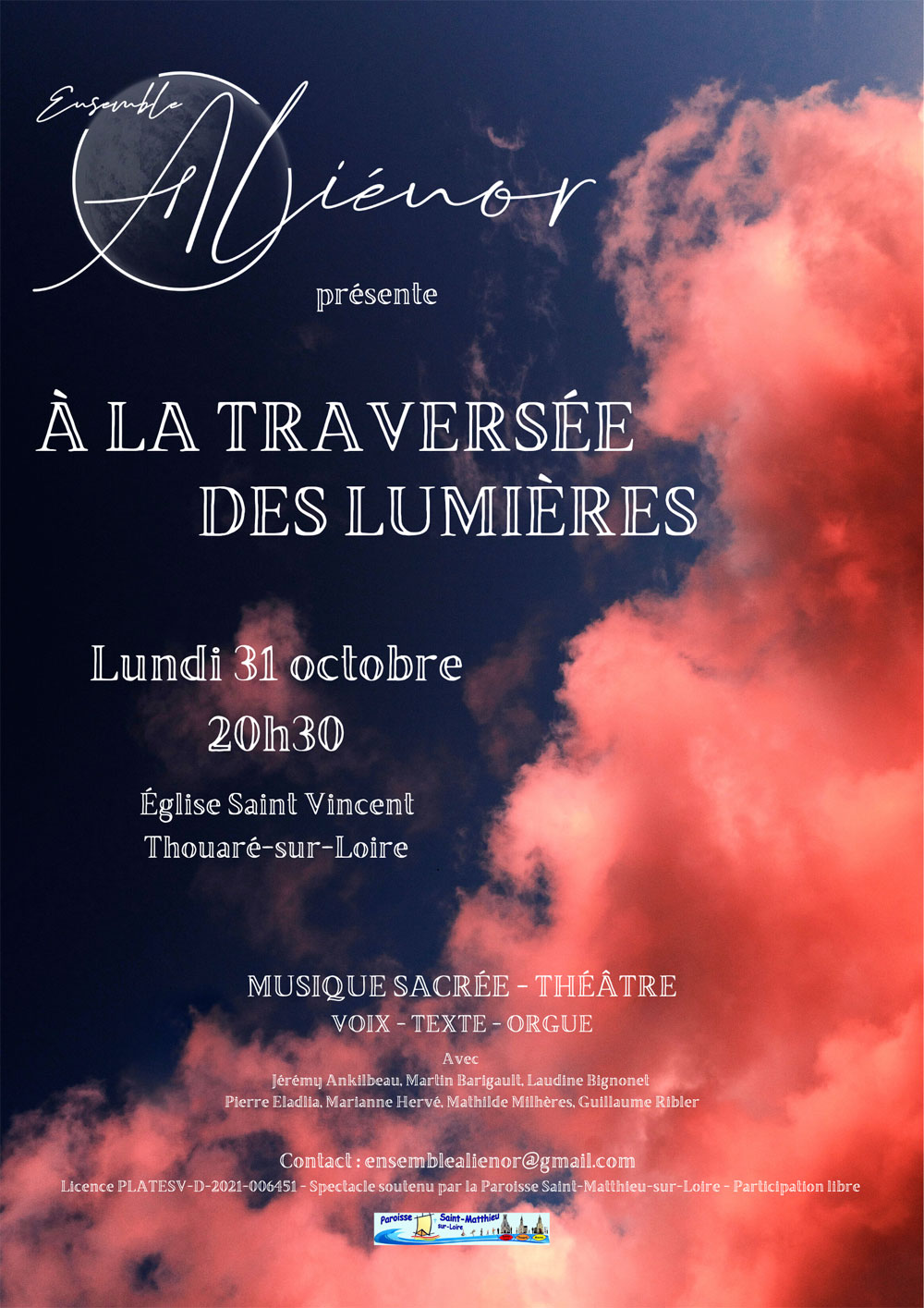 L’Ensemble Aliénor présente son spectacle « A la traversée des Lumières » en l’église Saint-Vincent à Thouaré-sur-Loire le lundi 31  octobre 2022 à 20h30.