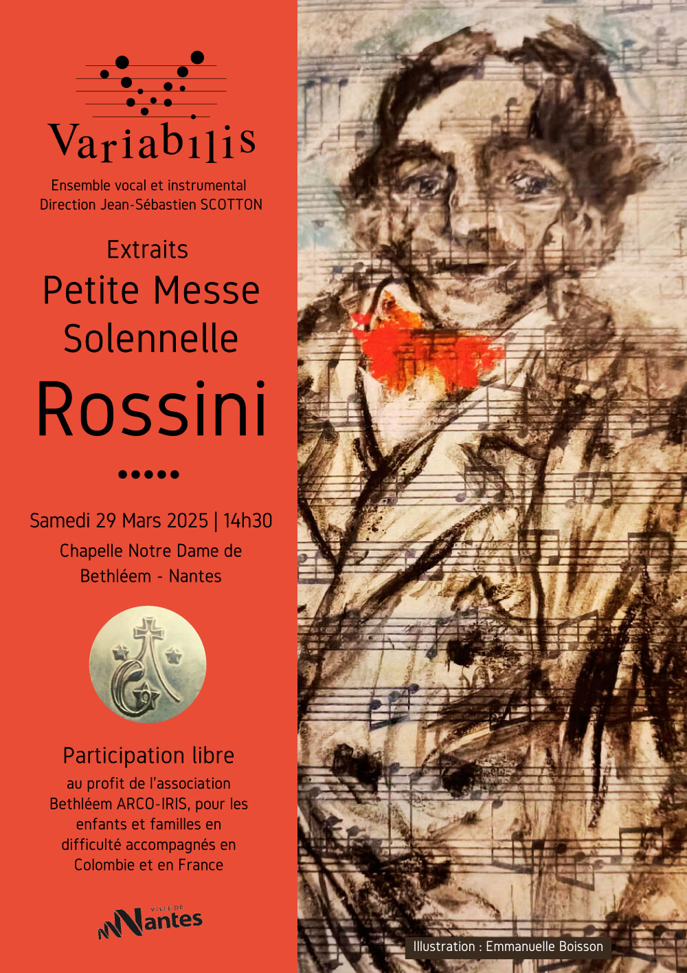 L’ensemble vocal et instrumental Variabilis, sous la direction de Jean-Sébastien Scotton, se produira le samedi 29 mars 2025 à 14h30 à la chapelle Notre-Dame de Bethléem de Nantes (4 chemin de la Censive du Tertre – Nantes – près de la piscine du petit-Port).