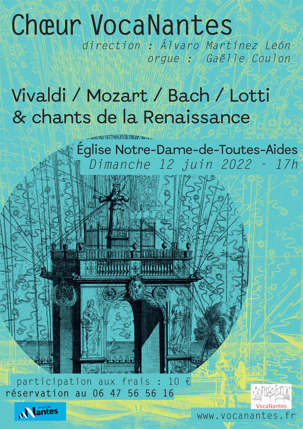 Dimanche 12 juin 2022 à 17h, concert en l’église Notre-Dame-de-Toutes-Aides (paroisse Sainte-Marie-de-Doulon) avec le chœur VocaNantes sous la direction de Álvaro Martínez León et Gaëlle Coulon à l’orgue.