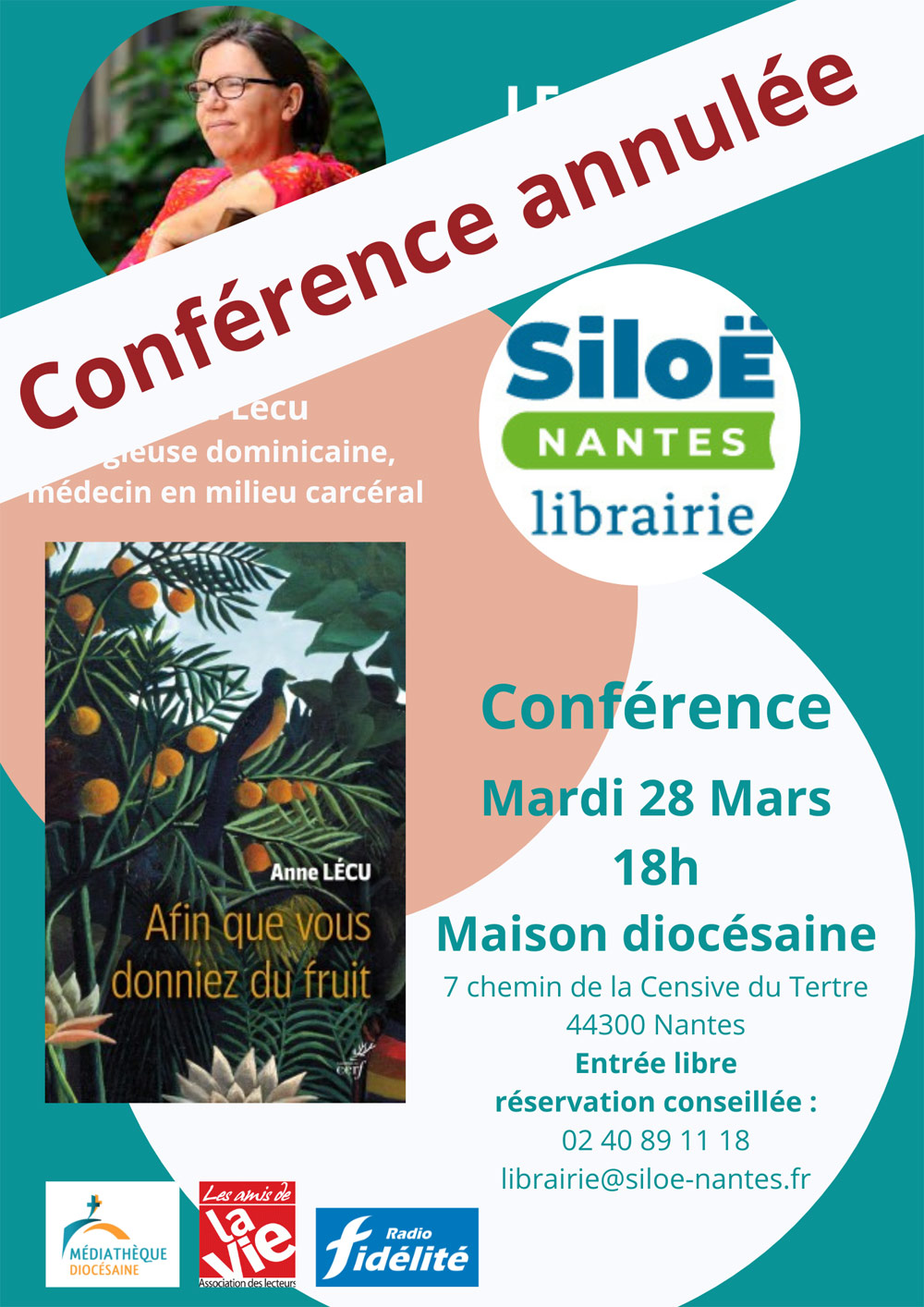 Une autre date sera prévue pour avoir le plaisir de recevoir sœur Anne Lécu à Nantes.