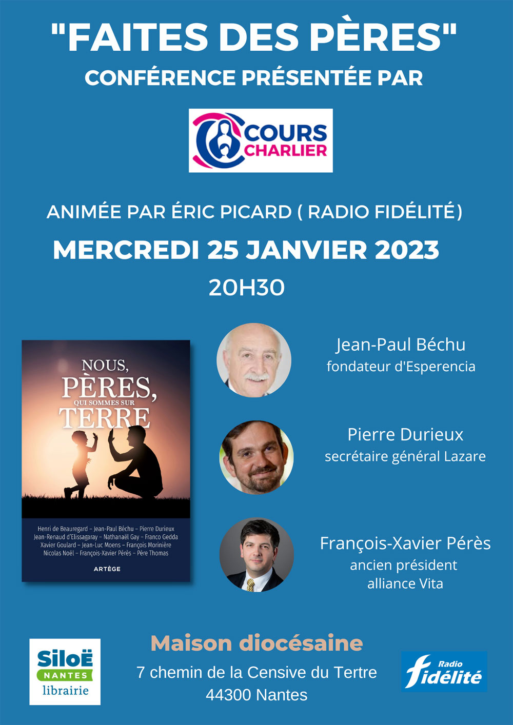 Ils seront présents le mercredi 25 janvier 2023 à 20h30 à la Maison diocésaine Saint-Clair pour la conférence « Faites des pères ».