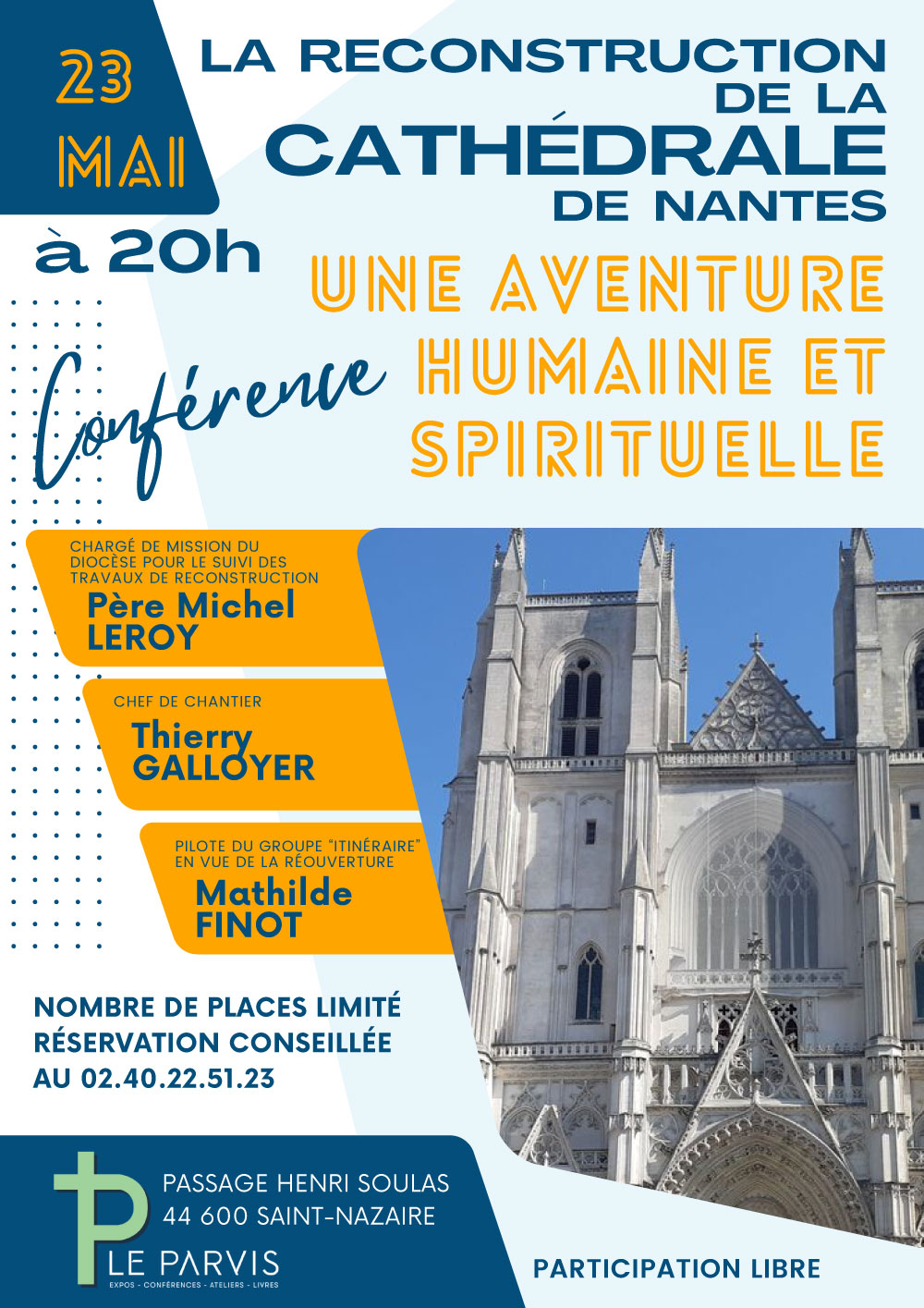 Avant la réouverture de la cathédrale de Nantes, le Parvis de Saint-Nazaire vous propose une conférence « La reconstruction de la Cathédrale de Nantes » le vendredi 23 mai 2025 à 20h.