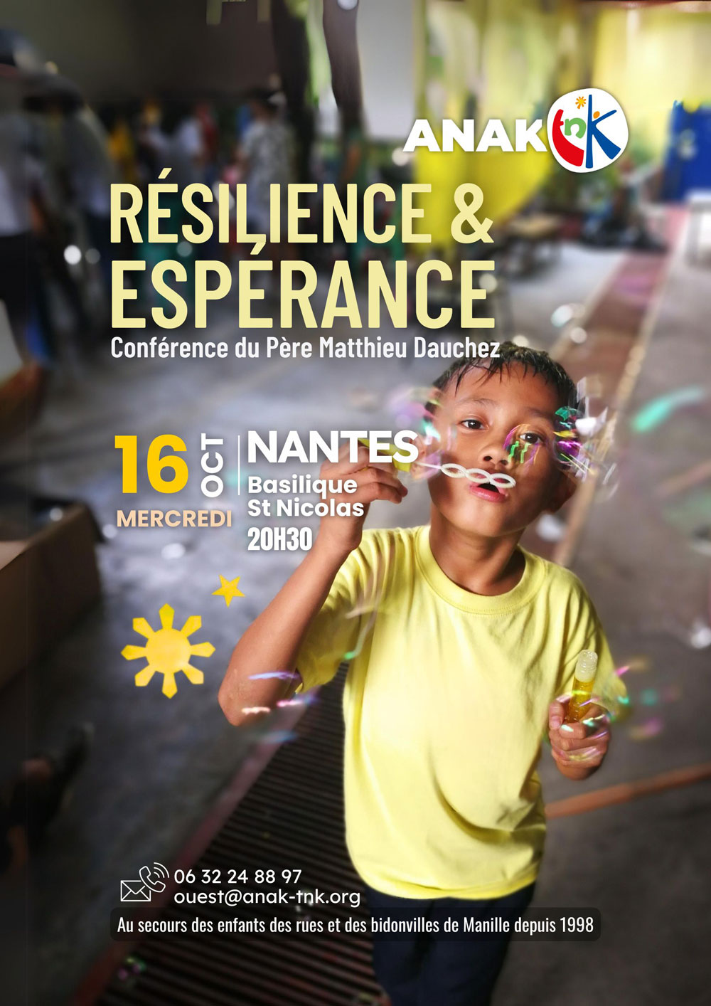 Venez approfondir ces thèmes avec le père Matthieu Dauchez, directeur de la fondation ANAK-Tnk (ONG qui vient en aide aux enfants des rues et des bidonvilles de Manille depuis 1998), et les enfants de la fondation, héros de la résilience et messagers d’espérance dont nous avons tant besoin !