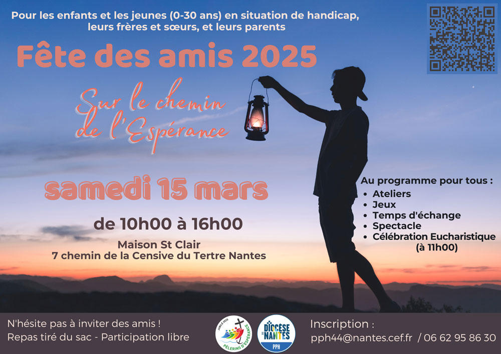 Tu es un jeune entre 0 et 30 ans en situation de handicap, viens faire la fête le 15 mars 2025 de 10h à 16h à la Maison diocésaine Saint-Clair à Nantes (7 chemin de la Censive du Tertre – 44300 Nantes)