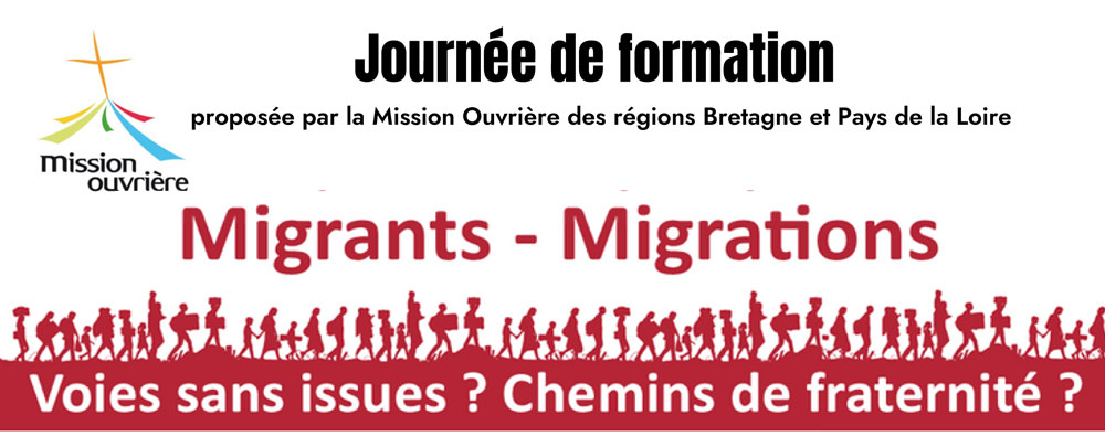 Le samedi 18 janvier 2025, la Mission ouvrière provinciale organise une journée de formation sur « Migrants – Migrations » qui se déroulera à la fois en présentiel (avec deux groupes à Nantes à la Maison diocésaine et à Saint-Nazaire au Carré Sainte-Anne – ainsi que dans les autres diocèses) et en visioconférence entre tous les diocèses.