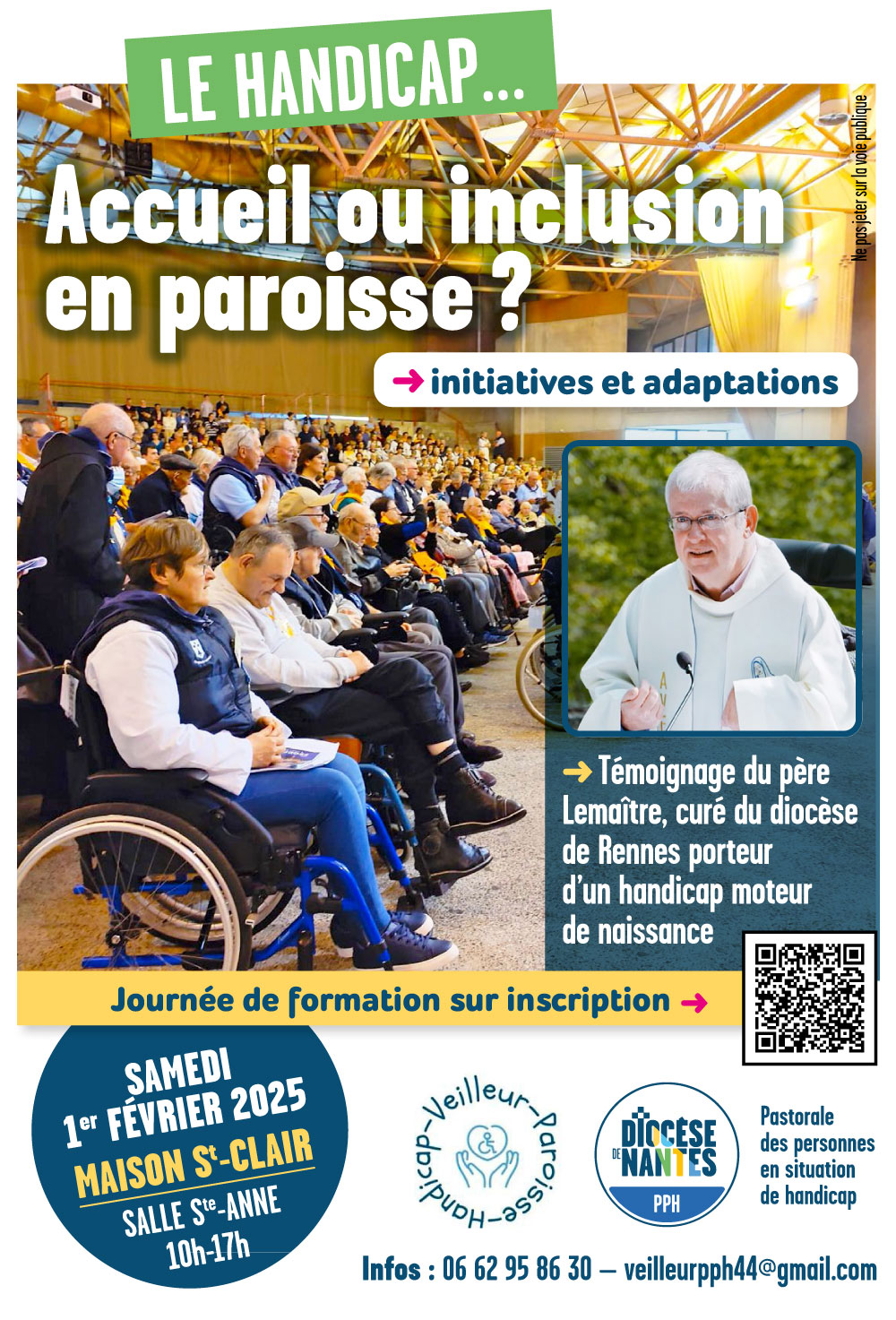 La Pastorale des personnes en situation de handicap (PPH) avec les veilleurs handicap en paroisse vous proposent une journée de formation avec pour thème « Le handicap : Accueil ou inclusion en paroisse ? » le samedi 1er février 2025 de 10h à 17h à la Maison Saint-Clair.