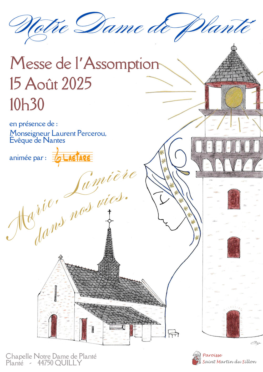Vendredi 15 août 2025 à 10h30, la paroisse Saint-Martin-du-Sillon célèbrera la messe de l’Assomption, à la chapelle Notre-Dame de Planté à Quilly.