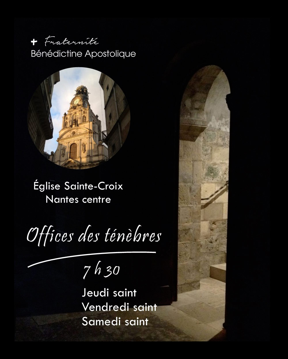 Venez prier les Offices des Ténèbres les jours saints, à 7h30 à l’église Sainte-Croix de Nantes (paroisse Notre-Dame-de-Nantes) avec la Fraternité Bénédictine Apostolique