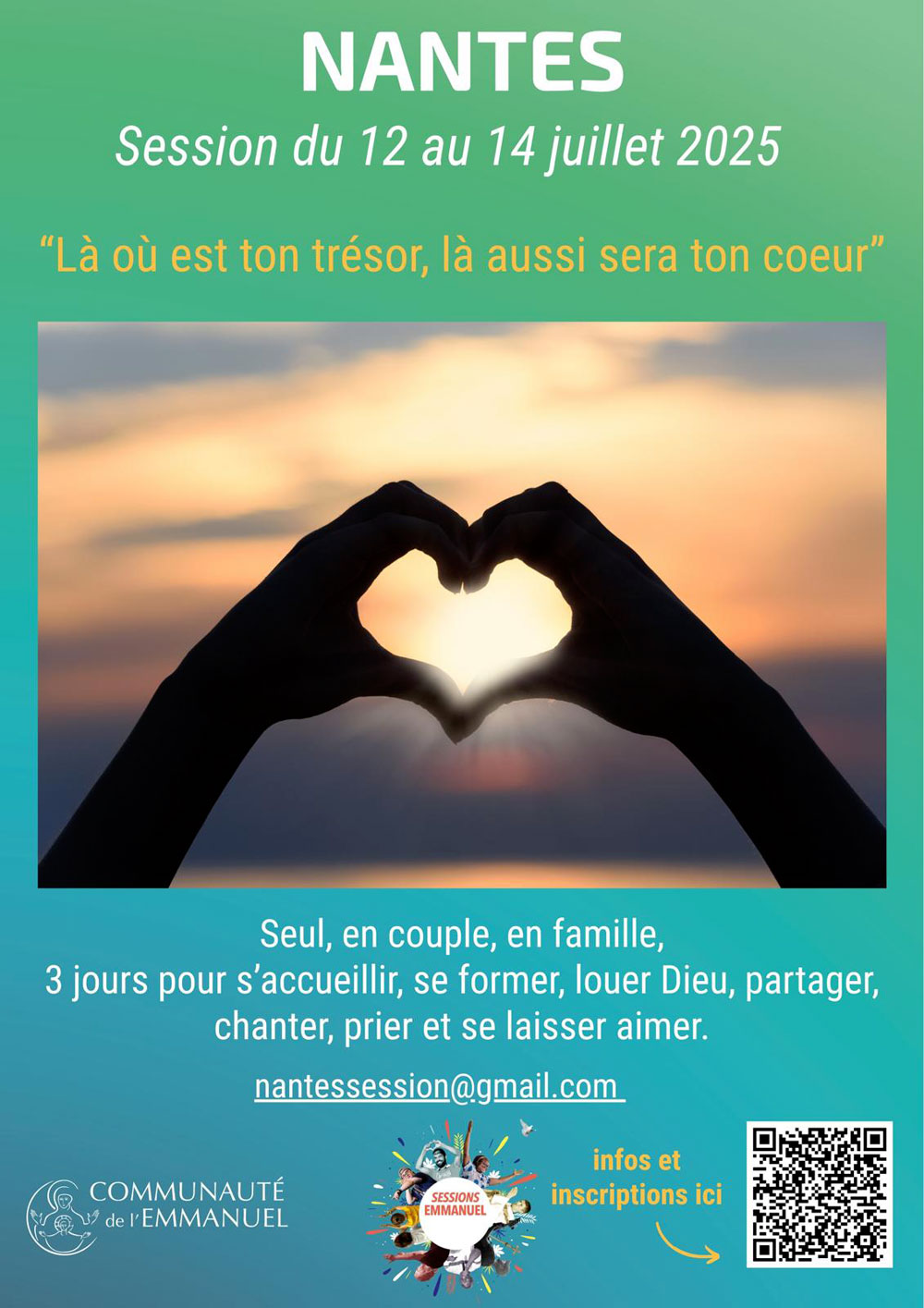 La communauté de l’Emmanuel organise une session d’été du 12 au 14 Juillet 2025 à l’église Sainte-Madeleine (paroisse Sainte-Madeleine de Nantes)