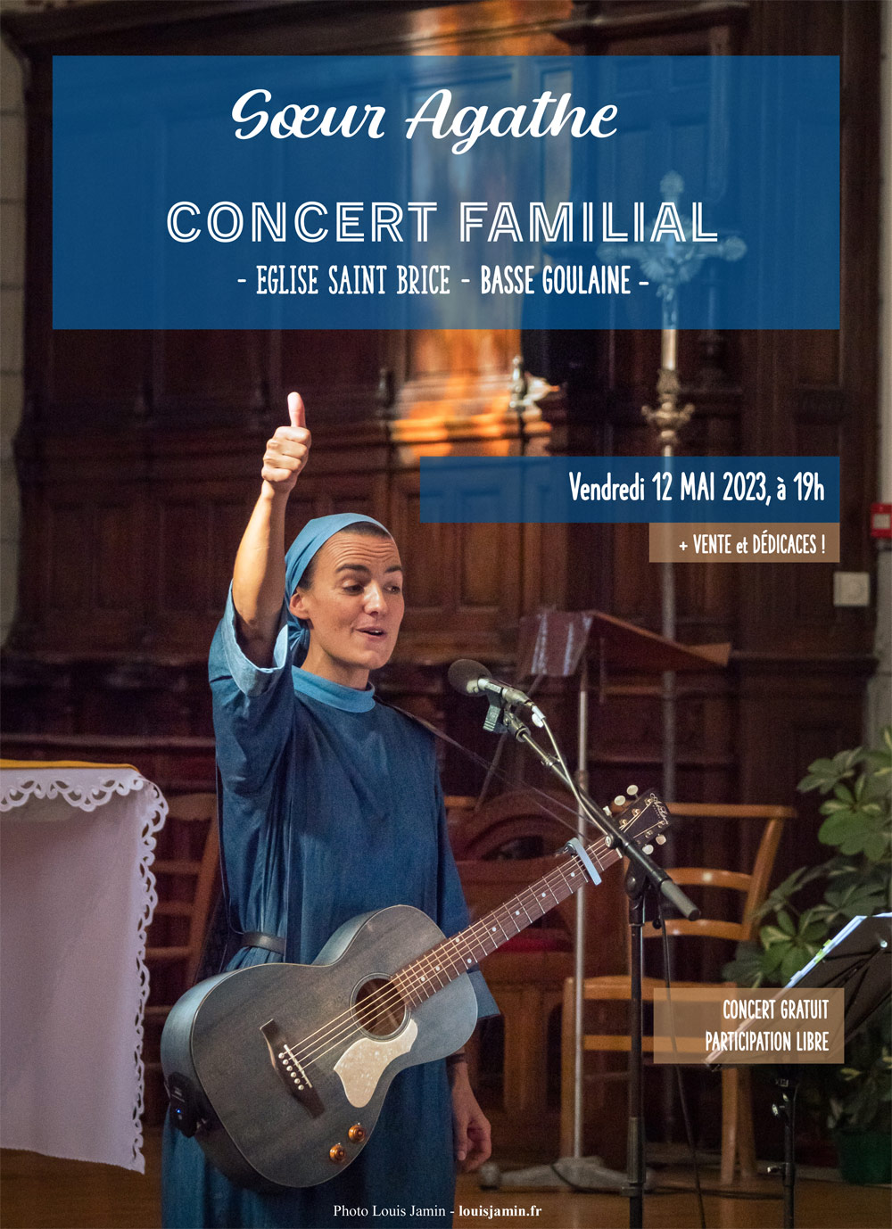 La paroisse Sainte-Anne-de-Goulaine accueille sœur Agathe pour un concert familial le vendredi 12 mai 2023 à 19h, dans l’église Saint-Brice de Basse-Goulaine.