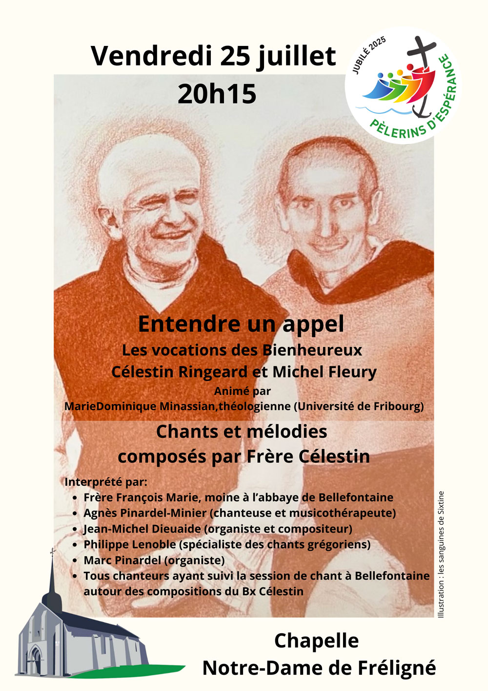 Dans le cadre de l’année jubilaire 2025, le prochain grand rendez-vous aura lieu le 25 juillet 2025 à 20h, lors d’une soirée intitulée « Entendre un appel, les vocations des Bienheureux Célestin Ringeard et Michel Fleury ».