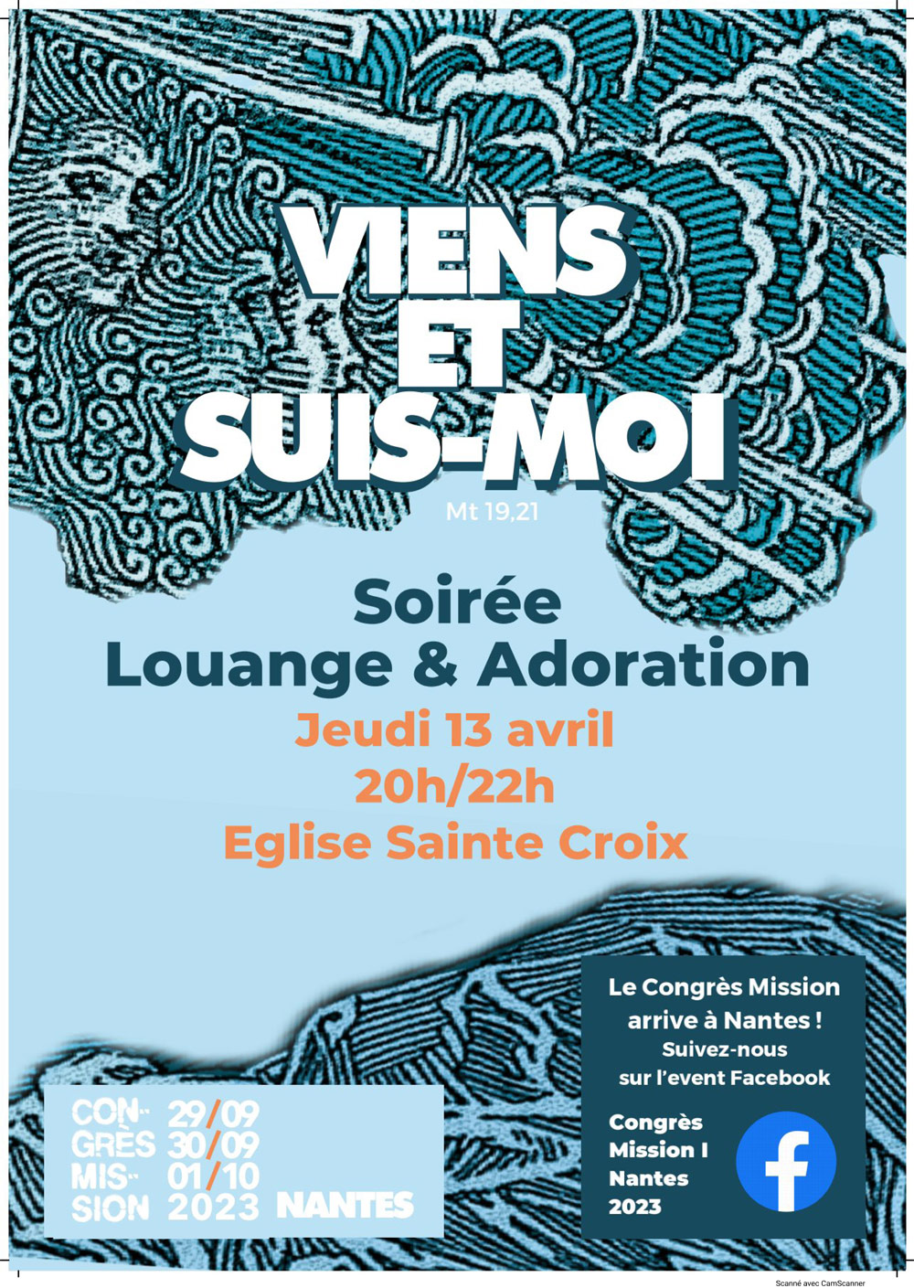 C’est encore loin dans vos agendas ? C’est pour cela que vous avez rendez-vous le 13 avril 2023 à l’église Sainte-Croix de Nantes à 20h pour une soirée de Louange & Adoration.