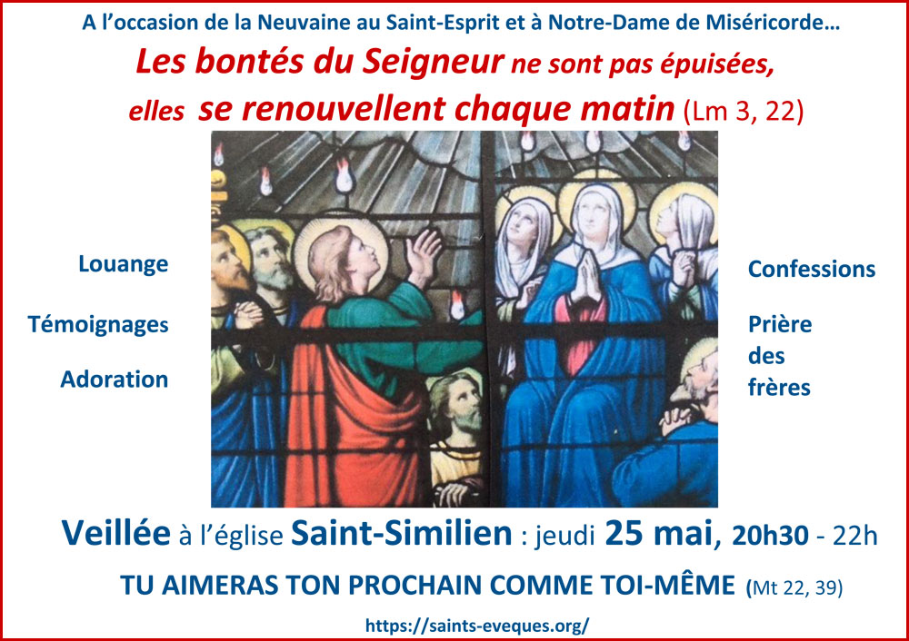 La paroisse des Saints-Evêques-de-Nantes organise une grande veillée à l’église Saint-Similien de Nantes, le jeudi 25 mai 2023 de 20h30 à 22h.