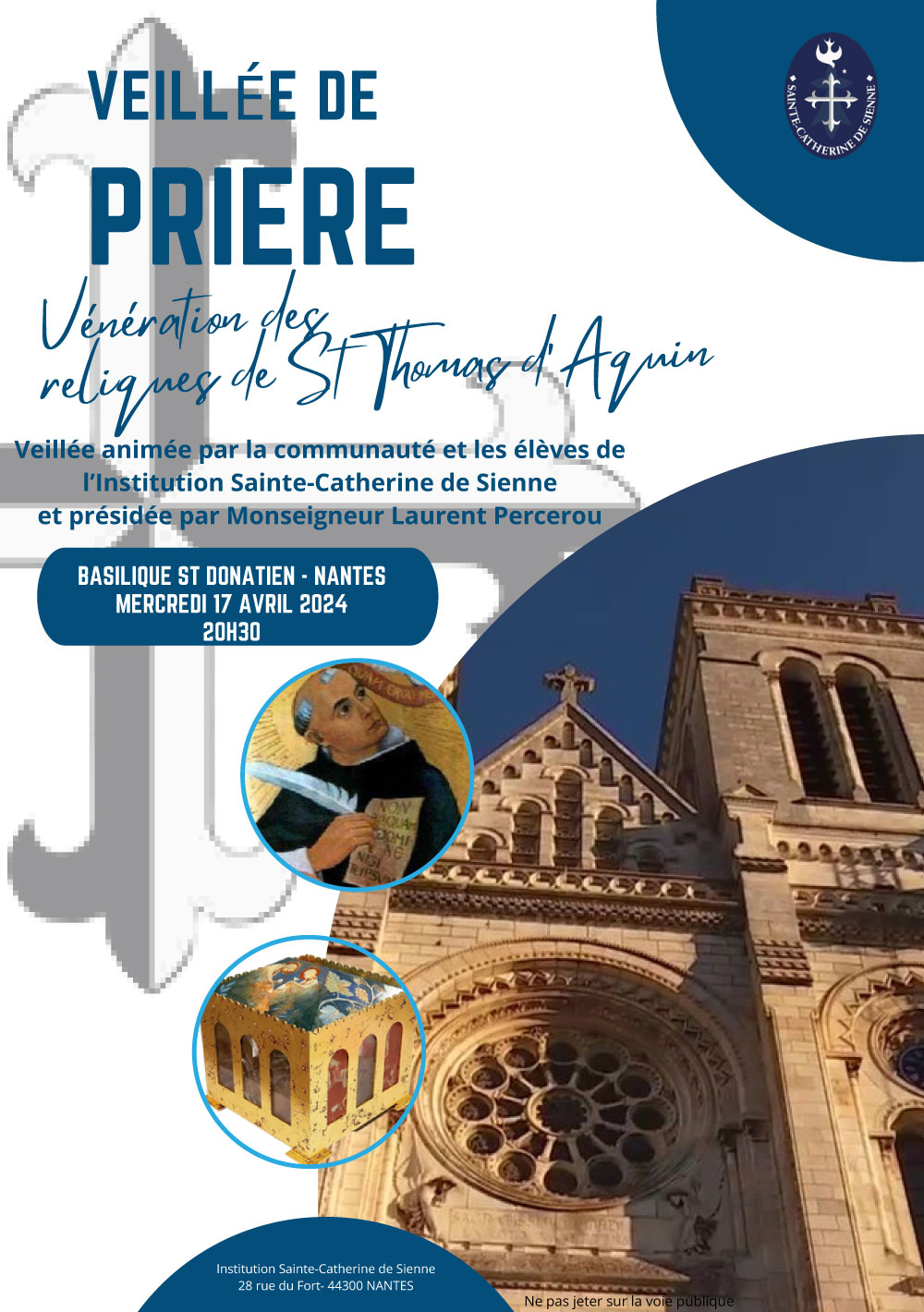 Vénération des reliques de St Thomas d’Aquin en la basilique Saint-Donatien de Nantes le mercredi 17 avril 2024 de 20h30 à 22h.
