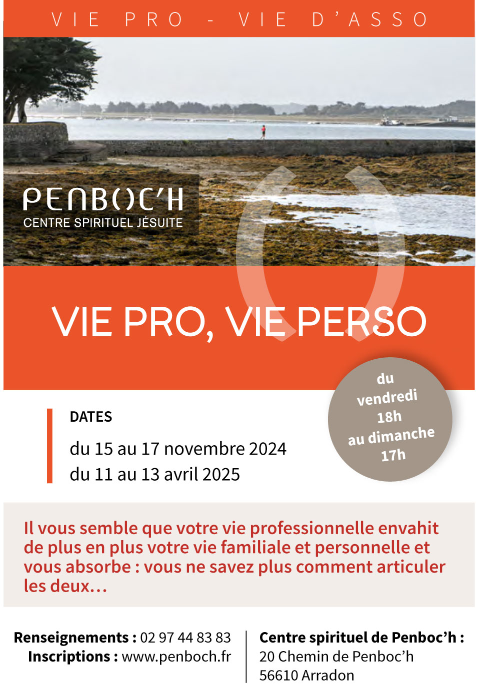Le centre spirituel jésuite de Penboc’h (56) organise une session du 15 au 17 novembre 2024 avec pour thème « Vie pro et Vie perso ».