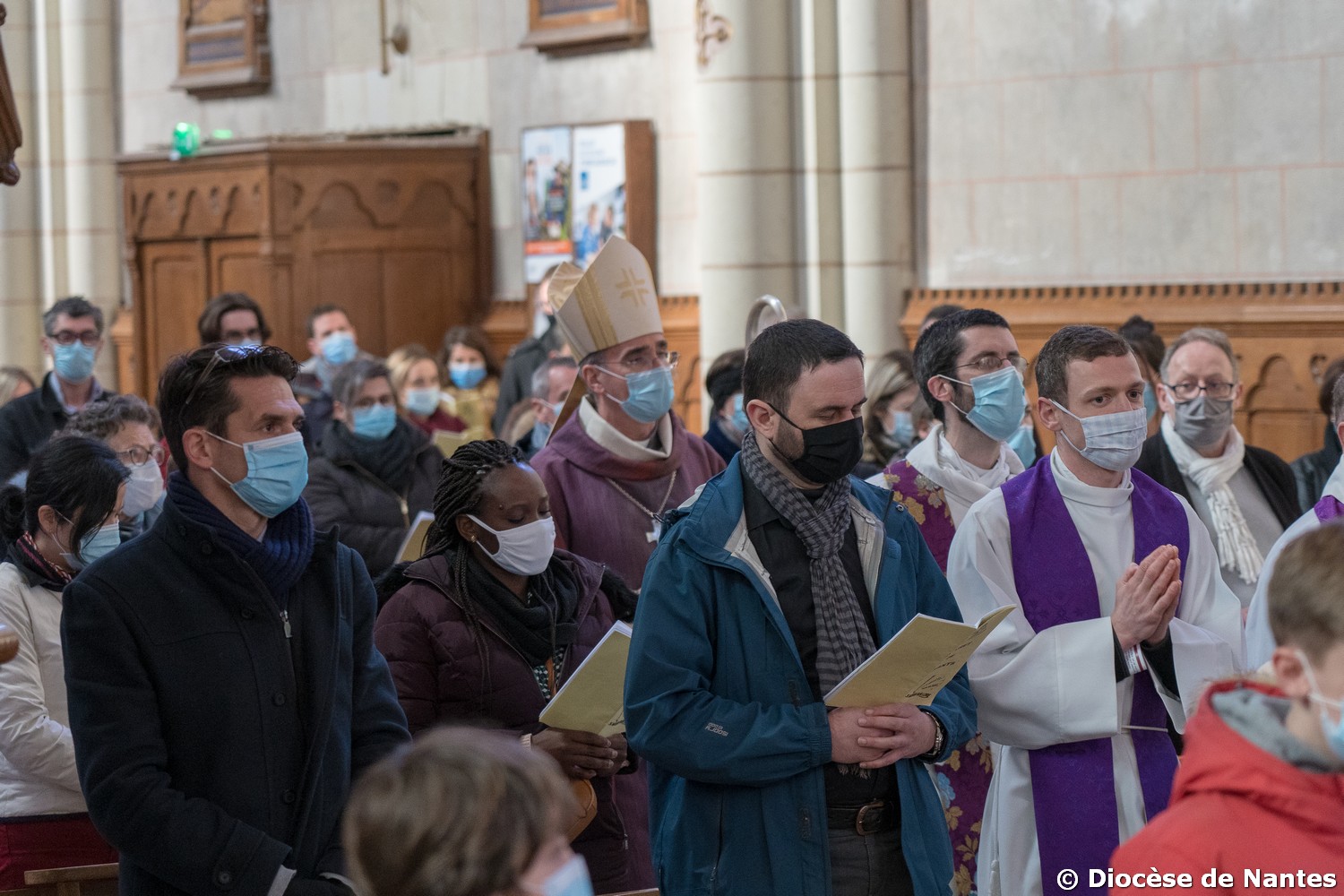 Dimanche 7 mars 2021 en l’église Notre-Dame du Pellerin, 54 jeunes de tout le diocèse, âgés de 12 à 20 ans, se sont retrouvés pour vivre l’étape de l’Appel décisif. Conviés dès 14h avant la messe, les adolescents accompagnés de leurs parents et parfois de leurs parrains et marraines ont vécu une après-midi sous le signe des rencontres de Jésus : avec la Samaritaine (racontée par Xavier, de l’équipe de conteurs-ses du diocèse), avec Hugues, jeune adulte baptisé venu apporter son témoignage et avec le jeune italien Carlos Acutis (proclamé bienheureux le à travers une vidéo. Les jeunes catéchumènes étaient invités à revisiter leur propre rencontre avec Jésus, moment fondateur qui les a conduits à emprunter un nouveau chemin de vie et à demander le baptême.