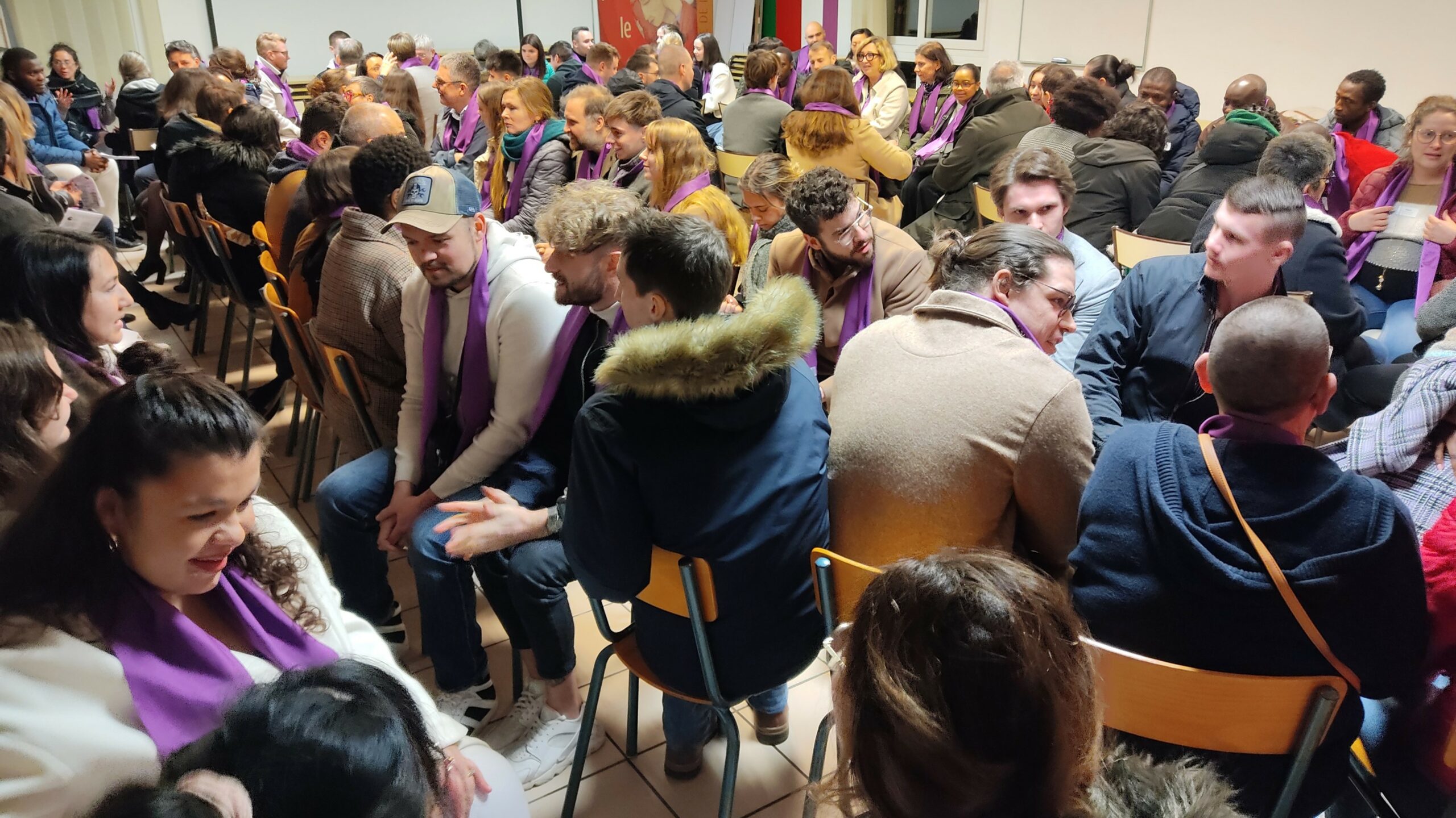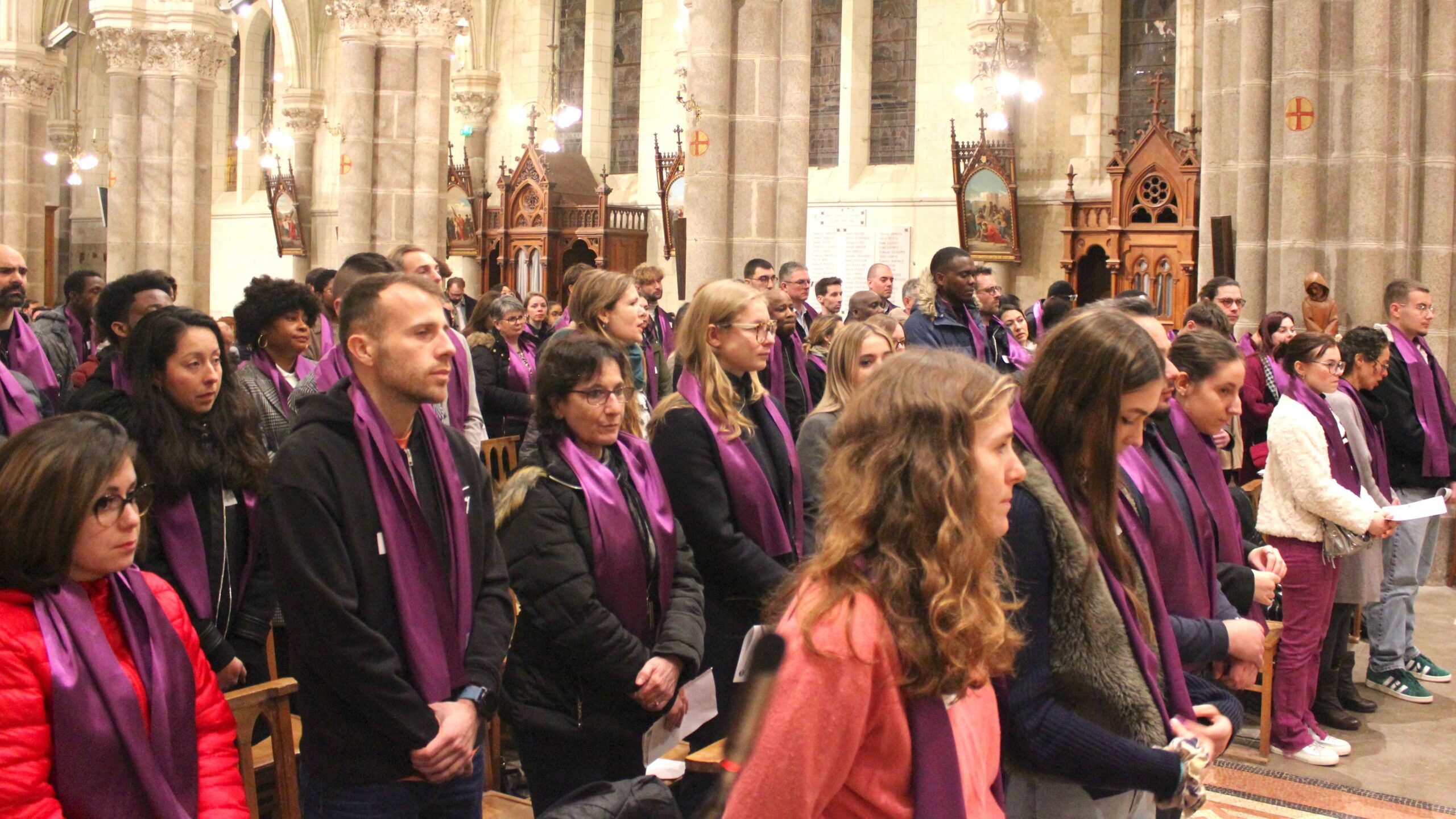 Une force intense m’a parcourue quand Monseigneur Percerou et moi avons échangé quelques mots avant que l’on me remette l’écharpe violette. Je suis fière et heureuse de la porter, pour moi c’est un honneur d’être enfin aux portes de la grande famille des chrétiens. Je me suis sentie entourée par tellement d’amour, de grâce et de joie lors de cet appel. Il m’a fallu quelques jours pour « redescendre de mon petit nuage » ! Je souhaite sincèrement à toute personne cherchant le chemin de pousser les portes de l’Église. Être catéchumène, c’est être à l’écoute des enseignements des chrétiens qui nous partagent comment ils suivent le Christ. Vivement le baptême !