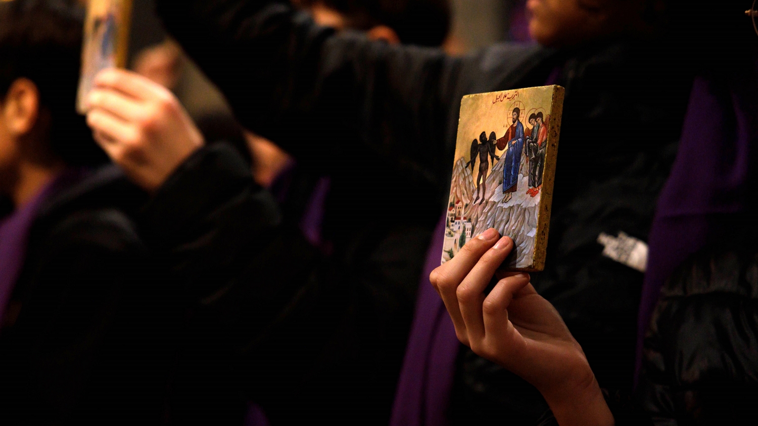 Des collégiens et lycéens qui ce matin encore ne se connaissaient pas, prennent le temps de partager sur l’Evangile de la tentation du Christ dans le désert. Ils sont arrivés, un peu inquiets, intimidés, souvent seuls de leur paroisse, se demandant ce qui allait bien pouvoir se passer pendant ce week-end. Après un temps en équipes, pour mettre des mots sur le chemin qui les conduit à demander le baptême, ensemble ils ont fabriqué une icône, partagé un goûter et prennent à présent le temps de la découverte de l’Evangile de la messe du lendemain.