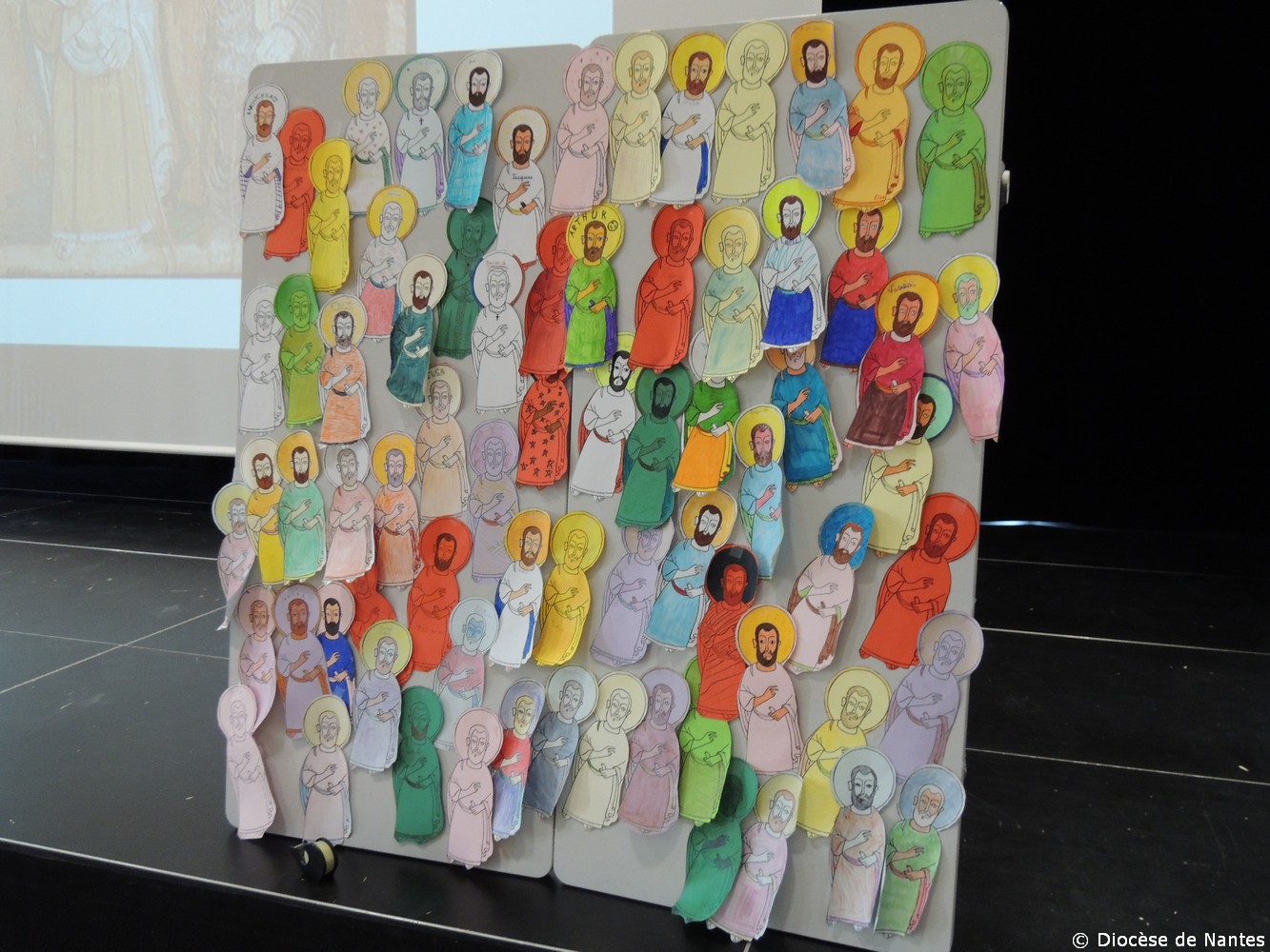 Le soleil était au rendez-vous pour accueillir ces jeunes et leurs familles au lycée de Briacé au Landreau. Ils ont commencé par s’émerveiller de retrouver autant de jeunes qui partagent le même chemin qu’eux vers le baptême. En équipes, ils ont échangé sur leur parcours puis ont découvert le récit de la Transfiguration de Jésus sous la forme d’une racontée biblique proposée par le groupe des conteurs du diocèse. Ils ont approfondi ce récit en réalisant une icône et au travers d’activités ludiques. Pour clôturer la journée, une veillée leur a permis de vivre un temps de cœur à cœur avec le Seigneur. Camille et Lucien, deux jeunes adultes, sont venus témoigner de leur chemin vers le baptême et la confirmation qu’ils ont reçus en 2022.