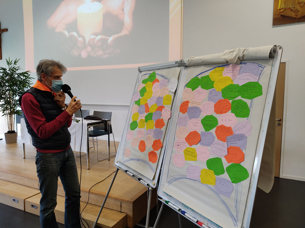 Pour commencer la journée, Félix, un chrétien du diocèse, a témoigné sur les paroles qui l’ont touché et qui le portent encore aujourd’hui : des paroles d’hommes et des Paroles de la Bible. La Parole du Deutéronome « Choisis la Vie », notamment, l’aide à surmonter les difficultés du quotidien et son importante charge de travail. Il a également expliqué que tous les matins, avec son épouse, il lit l’Évangile du jour et envoie un SMS à un de ses amis pour lui partager sa méditation. Un témoignage qui a inspiré les échanges en petits groupes.