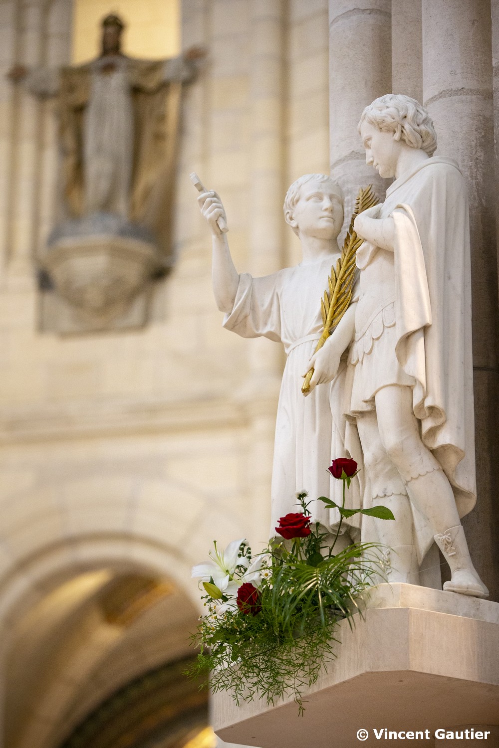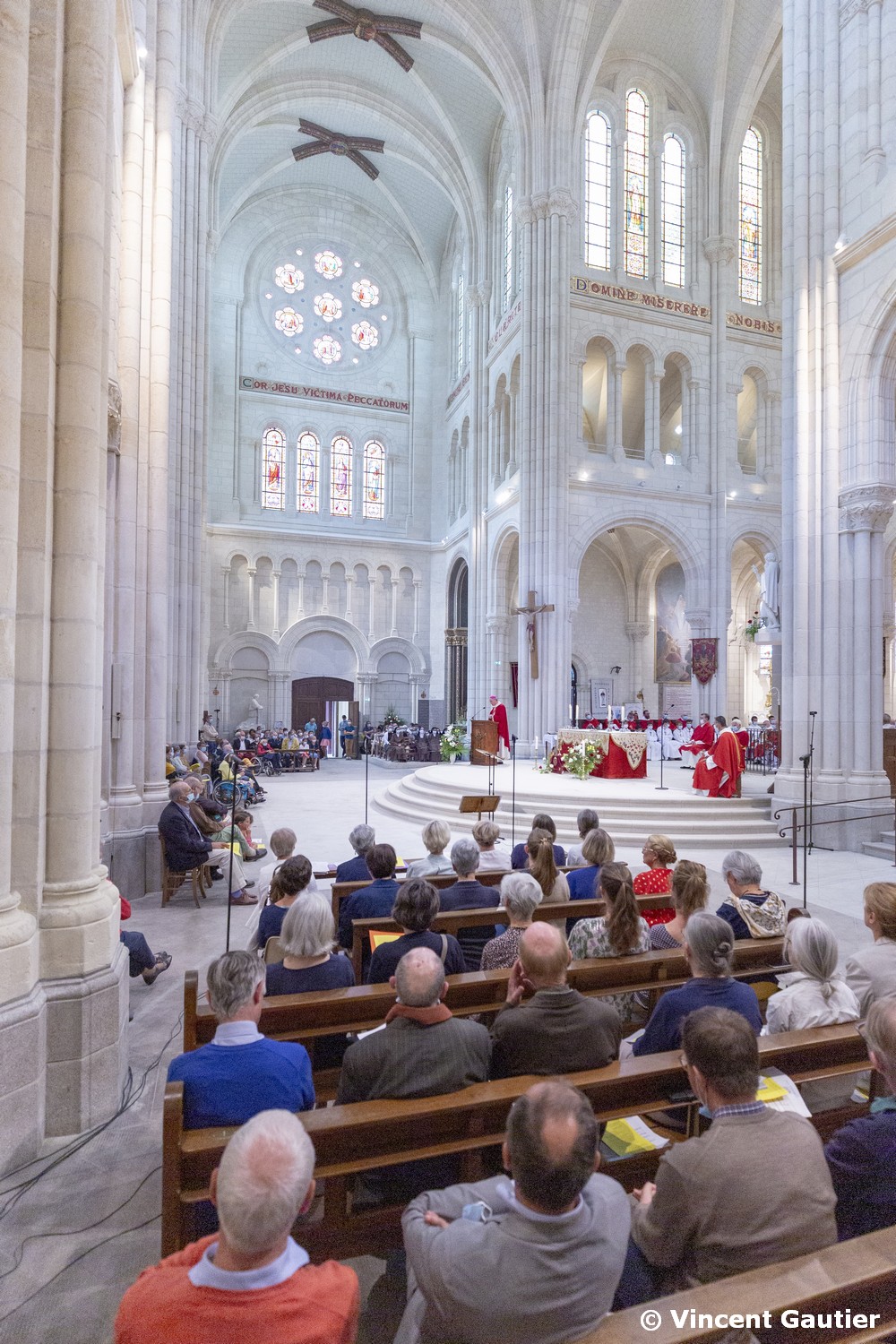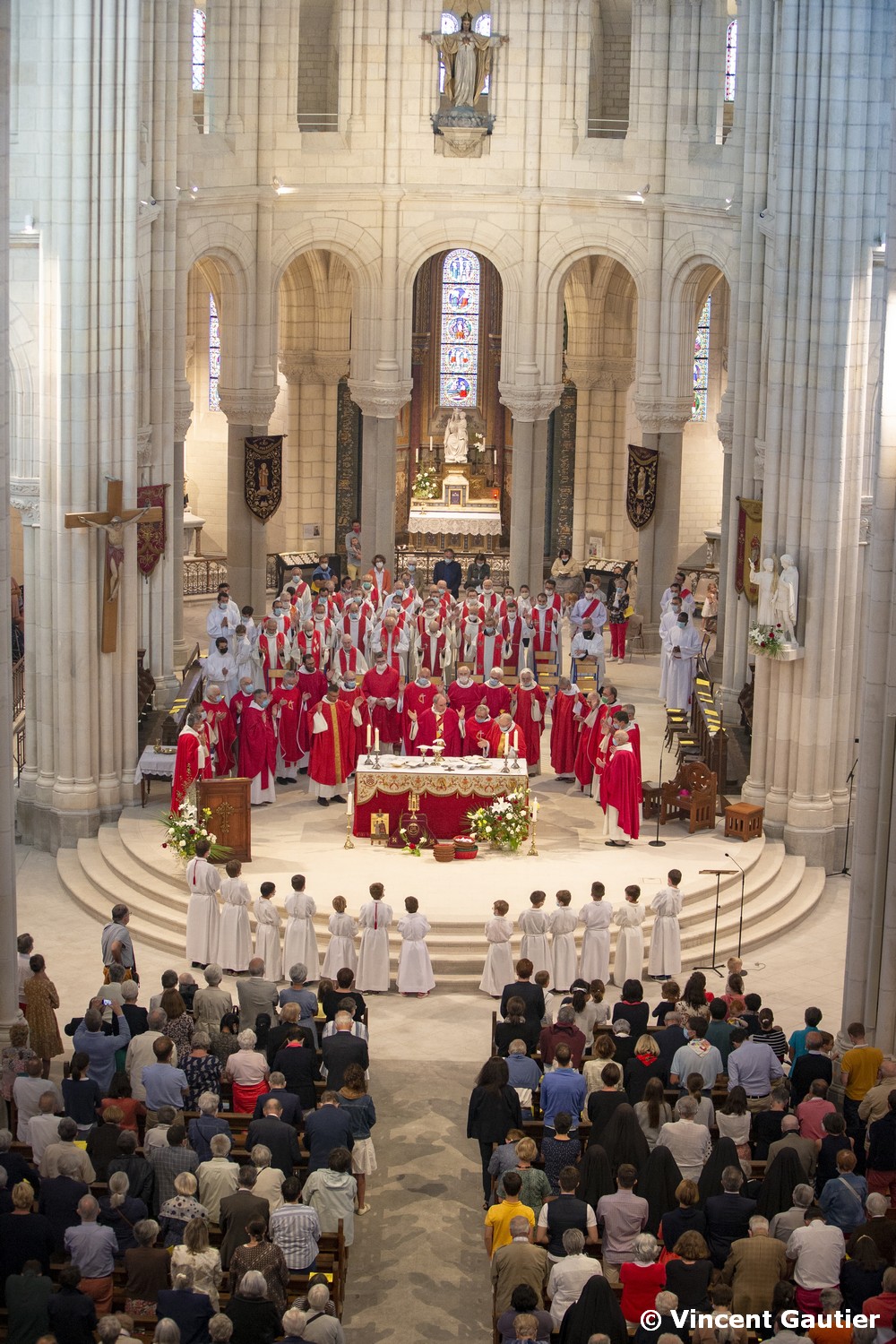 Basilique comble ! Certains ont suivi la messe sur le parvis, sonorisé pour l’occasion. En entrant dans l’édifice, Mgr Percerou a d’abord souhaité descendre à la crypte, se recueillir un instant sur le tombeau des saints martyrs, avec le père Michel Bonnet.
