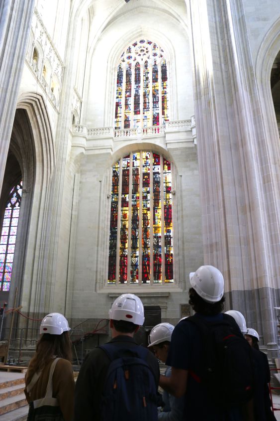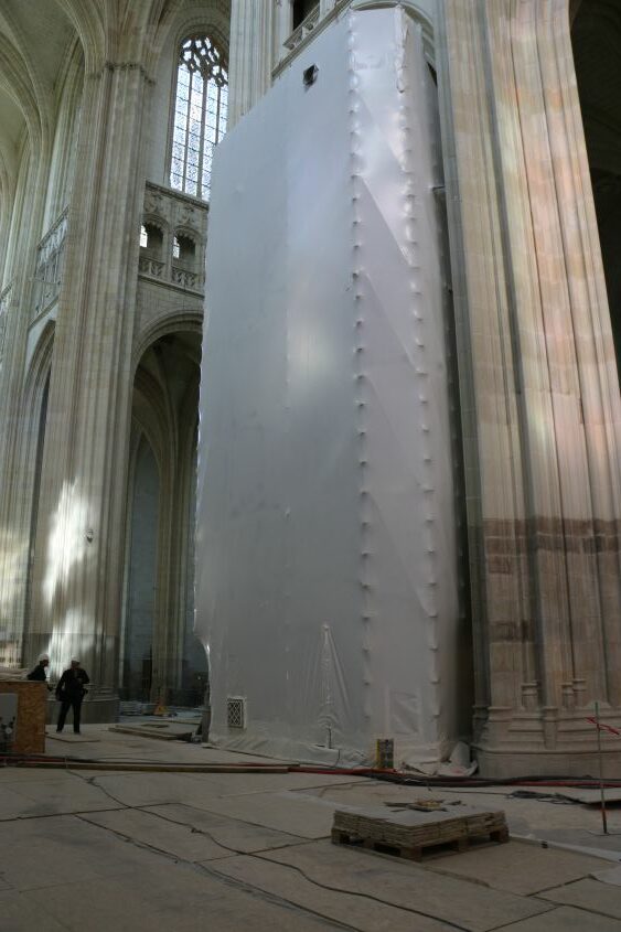 Les travaux de restauration du transept sud et du chœur sont à présent achevés. Le remontage de l’orgue de chœur est prévu pour les mois d’août et septembre. À la rentrée, débutera le chantier le plus important de cette restauration : celui du massif occidental. Il s’agit de la façade principale, côté place Saint-Pierre, ainsi que de la tribune d’orgue à l’intérieur de la cathédrale. Ce chantier colossal inclut également la verrière et l’orgue.
