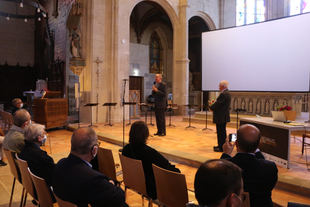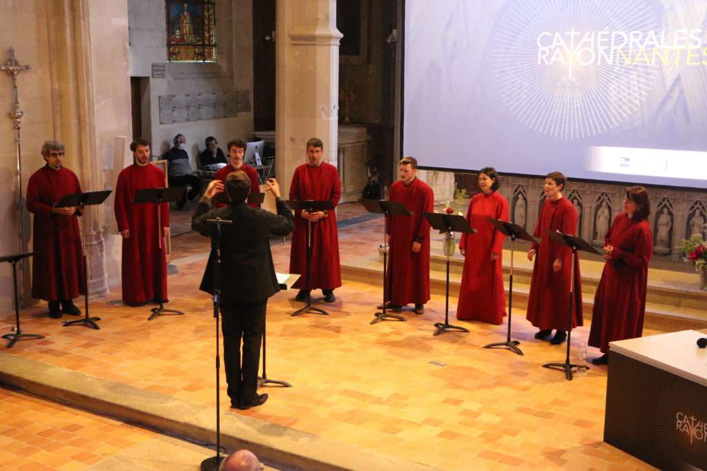 La Schola de la cathédrale, sous la direction d’Etienne Ferchaud, a ponctué la rencontre en interprétant des œuvres du XVe siècle ainsi qu’une œuvre contemporaine dédiée à la lumière.