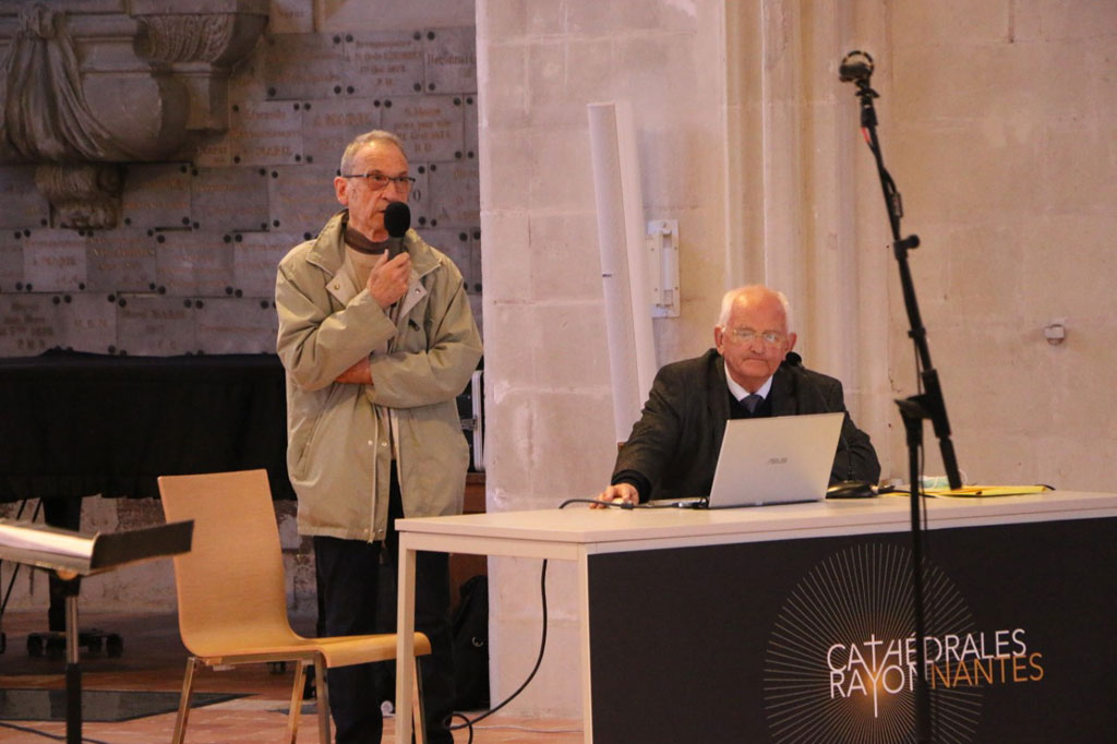 La première soirée avait pour thème : « La reconstruction de la cathédrale de Nantes sous les ducs bretons au XVe siècle : un art dirigé » par le professeur Jean-Marie Guillouët, de l’Université de Bourgogne. Cet exposé a été complété par le témoignage de Guy Wambergue, sculpteur de la statue la plus récente de la cathédrale, Notre-Dame de Pitié.