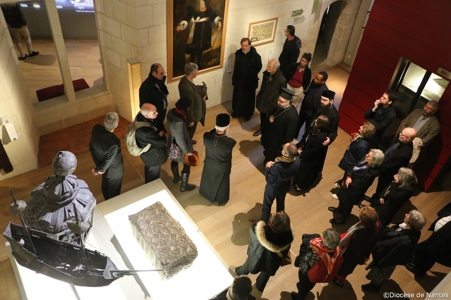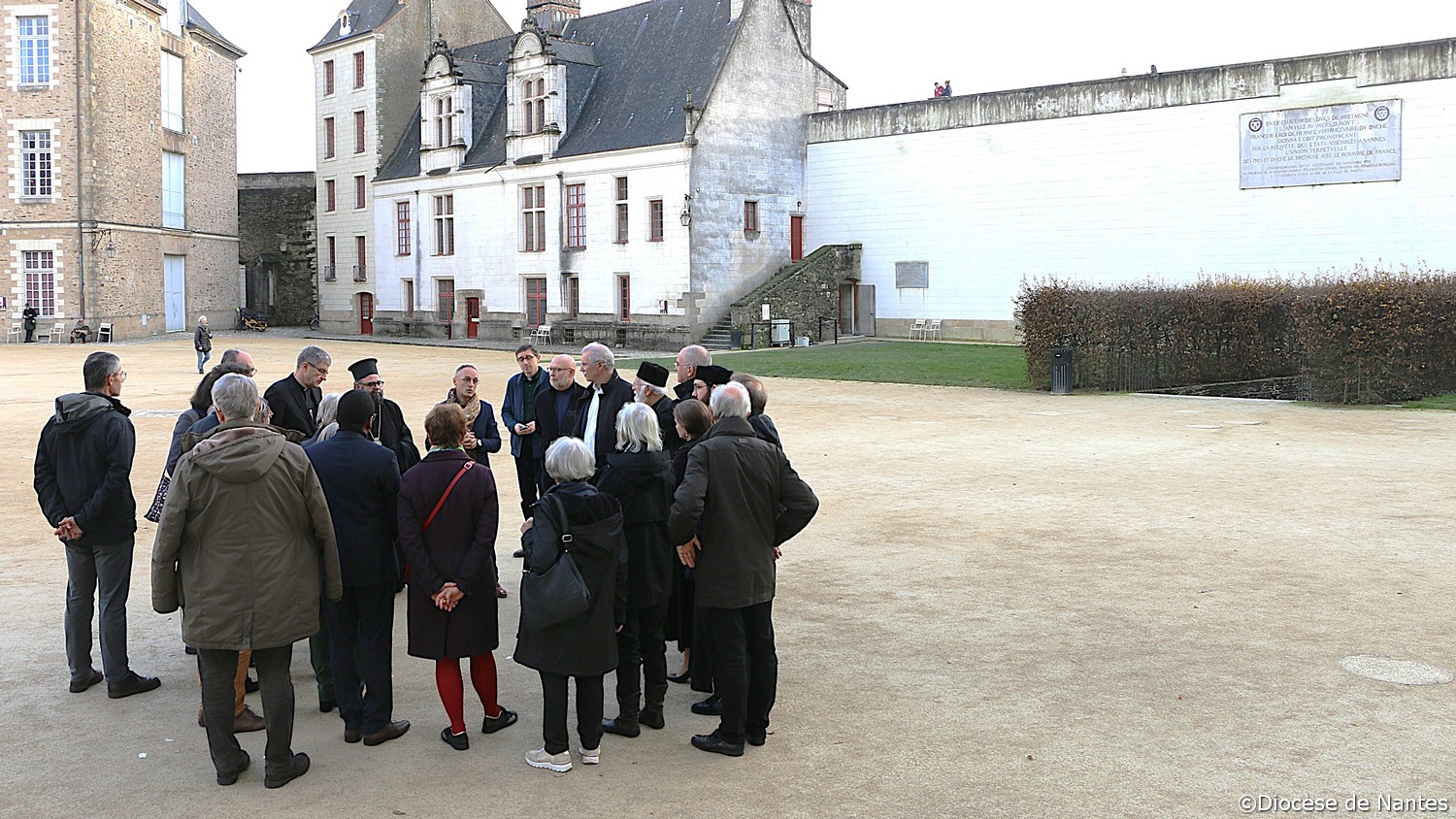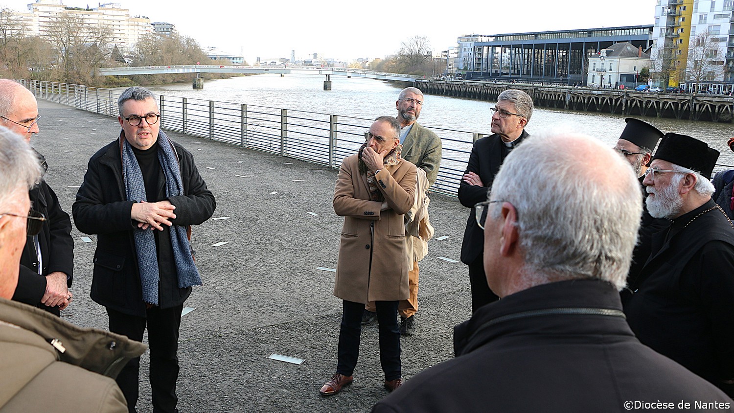 Ils ont été accueillis par Mgr Percerou, évêque de Nantes : « C’était hier : les monuments, les mémoires, les bords de la Loire gardent des traces de ce passé, de cette pente tentatrice pour l’être humain d’entrer en connivence pour disposer d’autrui comme d’un objet ! Nos Eglises rassemblées aujourd’hui souhaitent redire avec force, au nom du Christ, leur engagement contre l’esclavage, celui du passé dont il faut faire mémoire, mais aussi contre celui qui subsiste aujourd’hui, ici et ailleurs, sous toute forme connue ou souterraine, et toujours inacceptable. »