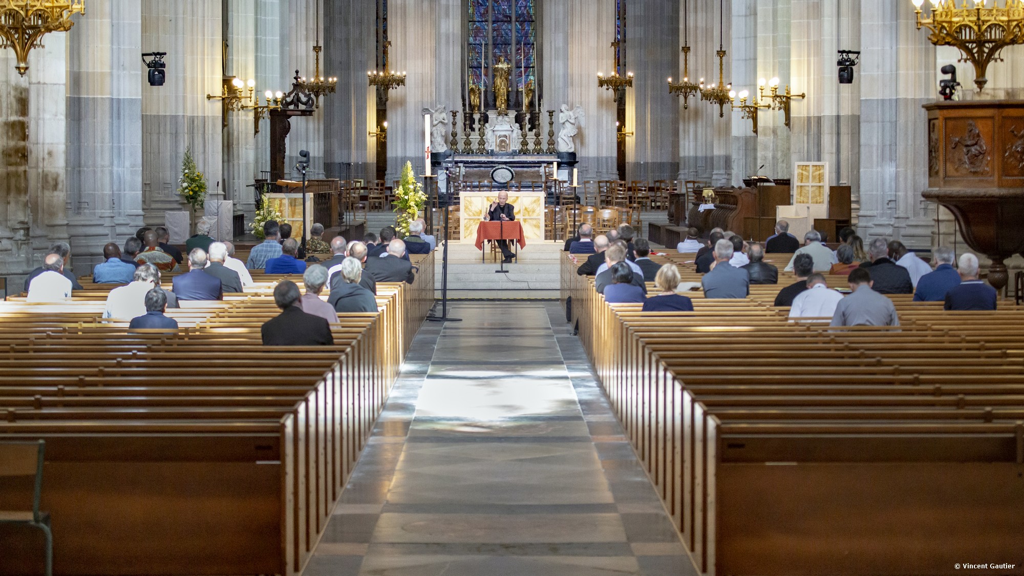 Les prêtres qui participaient à la messe chrismale à la cathédrale ont suivi plus tôt dans l’après midi de ce mercredi 27 mai 2020, une conférence de Mgr d’Ornellas, archevêque de Rennes, qui les a fait entrer, avec tous les fidèles, dans « l’année de la charité pastorale ».