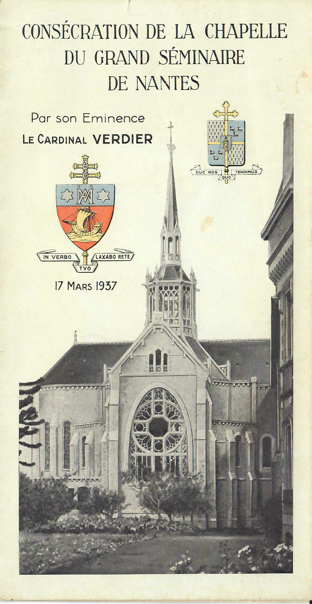 La chapelle du séminaire est consacrée le 17 mars 1937 par le cardinal Verdier, archevêque de Paris, en présence de Mgr Villepelet, évêque de Nantes.