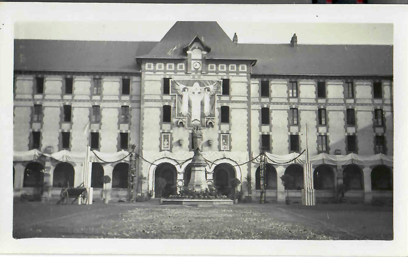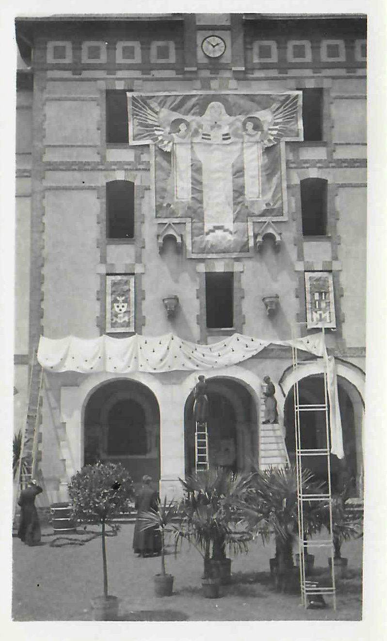 Décoration de la façade de la chapelle dans la cour intérieure, 17 mars 1937 (©Archives diocésaines de Nantes, 2Y016/057)