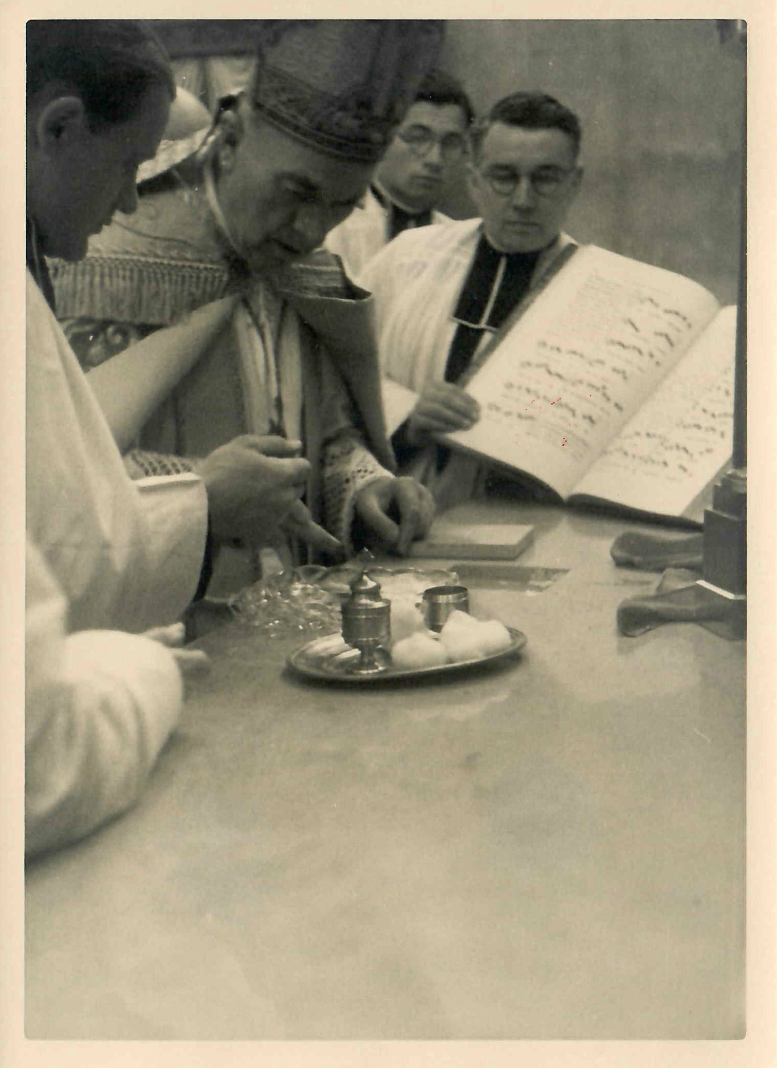 Mgr Verdier consacre le maître-autel dédié au Christ-Rédempteur (©Archives diocésaines de Nantes, 2Y016-071).