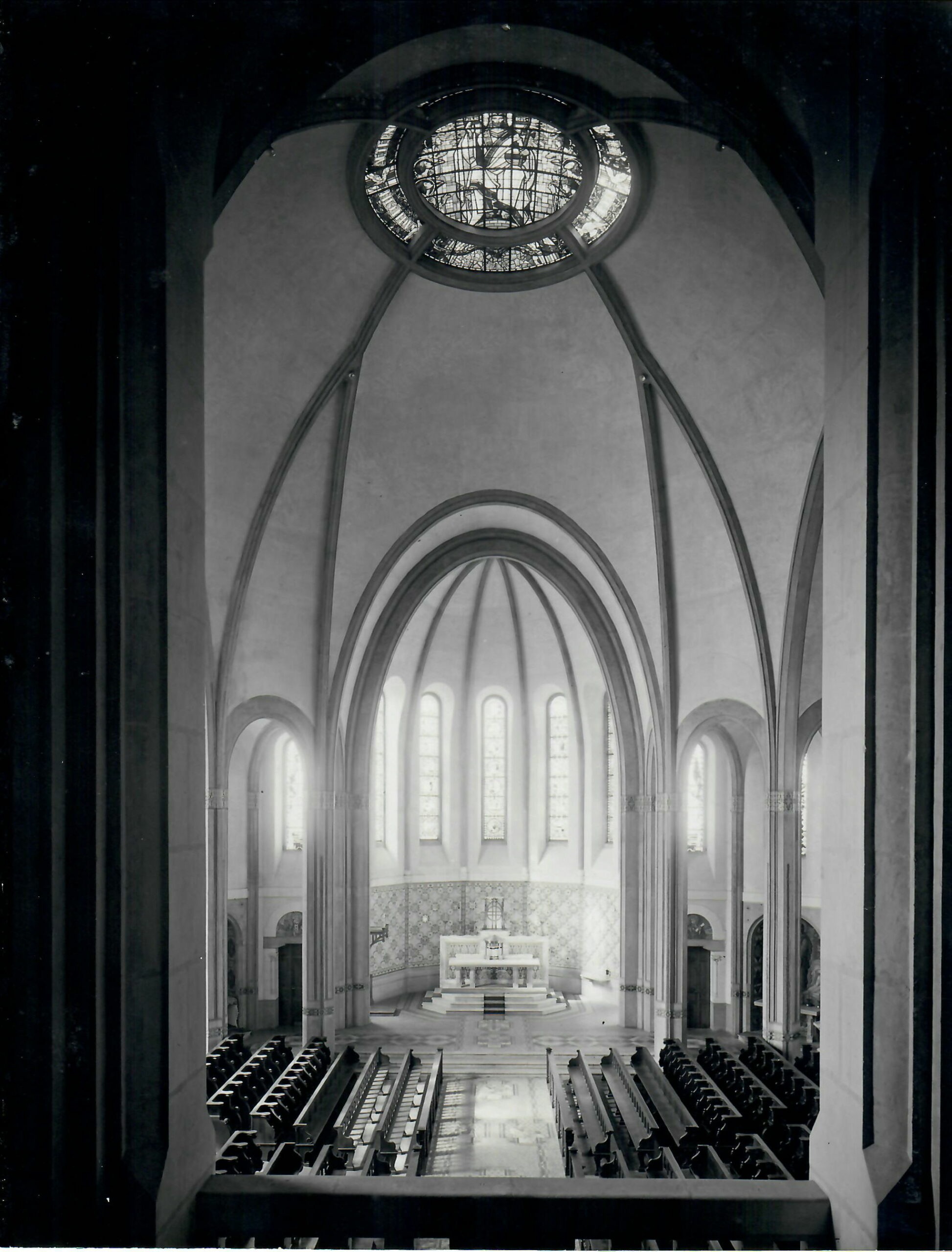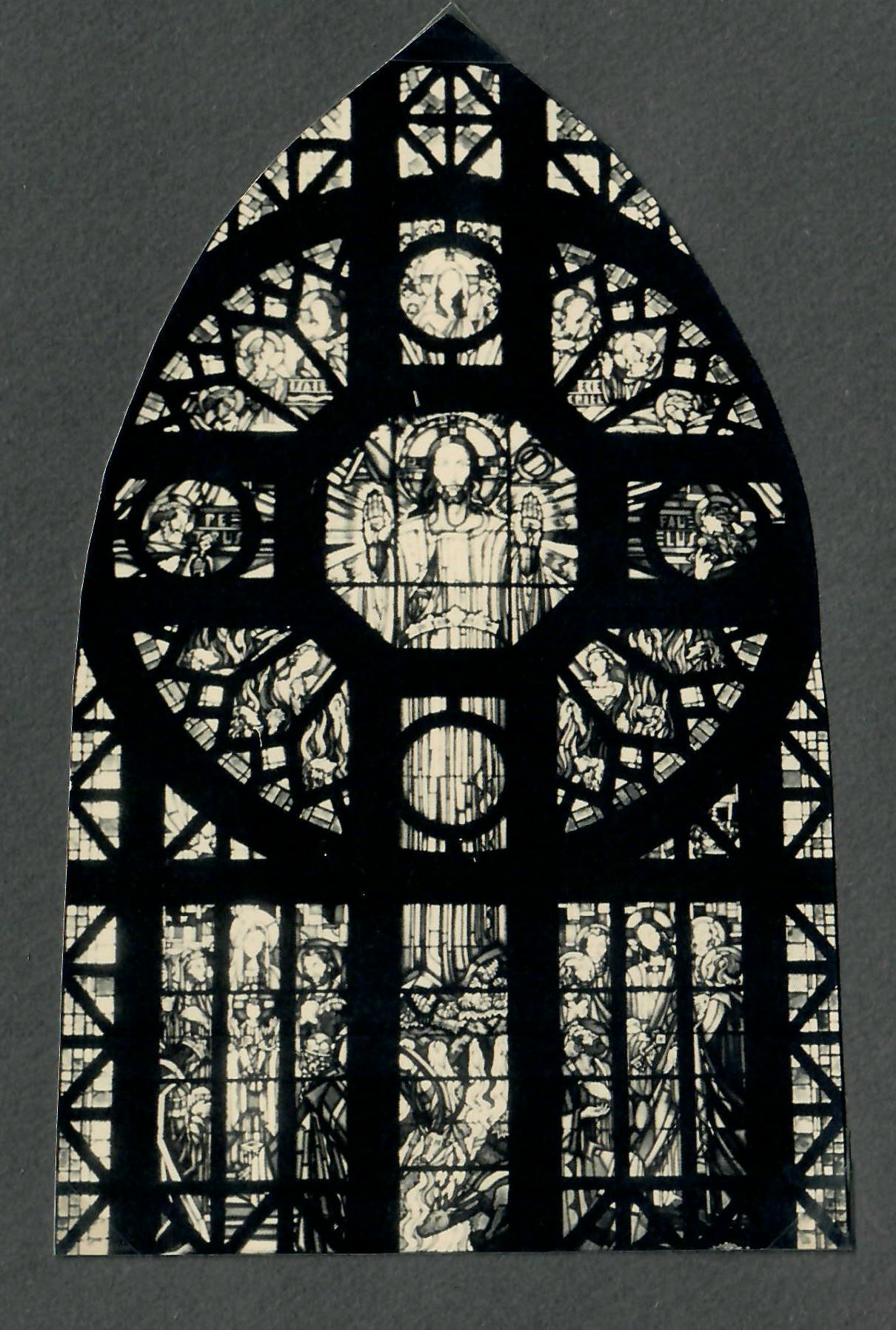 Verrière orientale du Christ en gloire (©Archives diocésaines de Nantes, 2Y016-134). Cette verrière a été déposée.