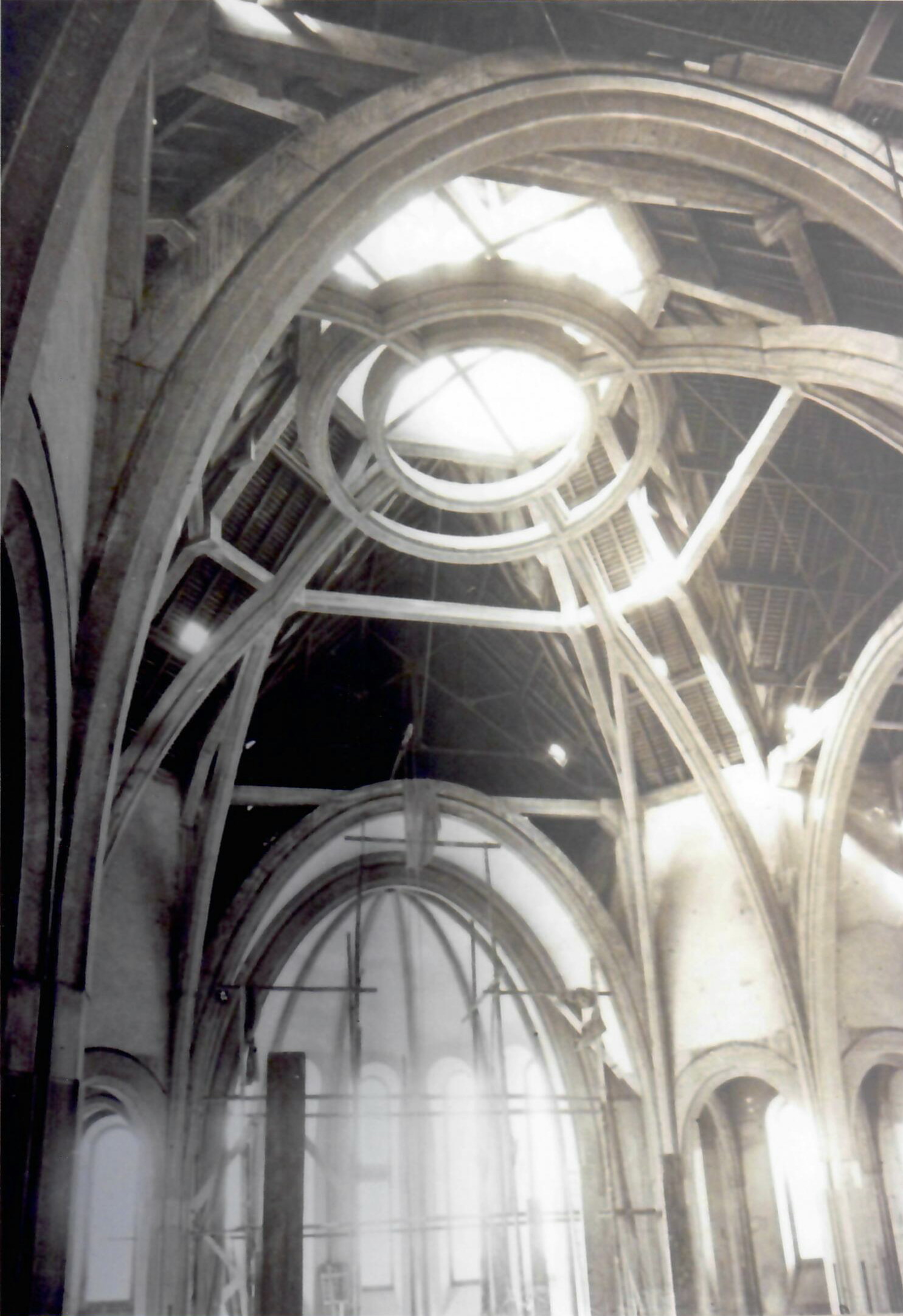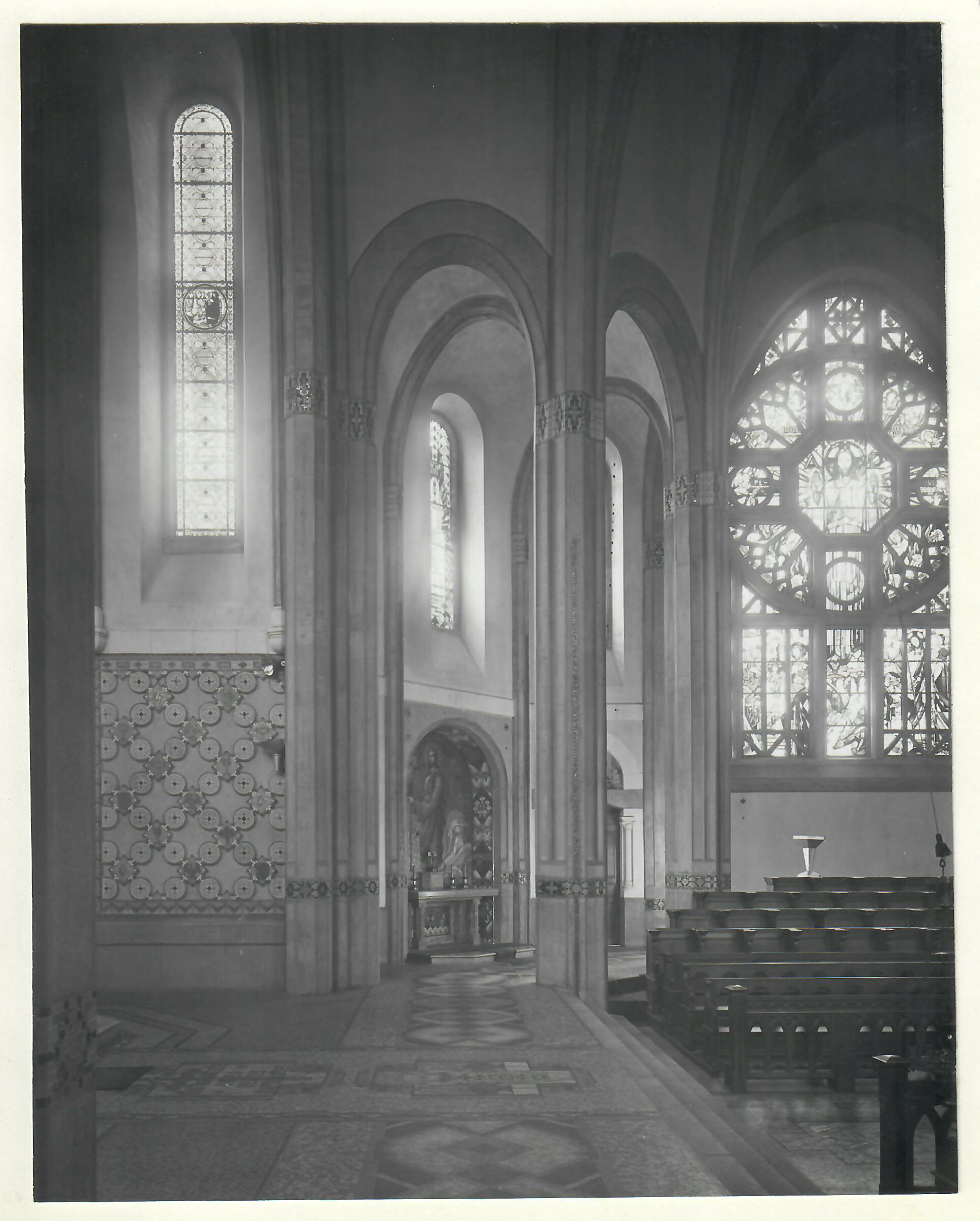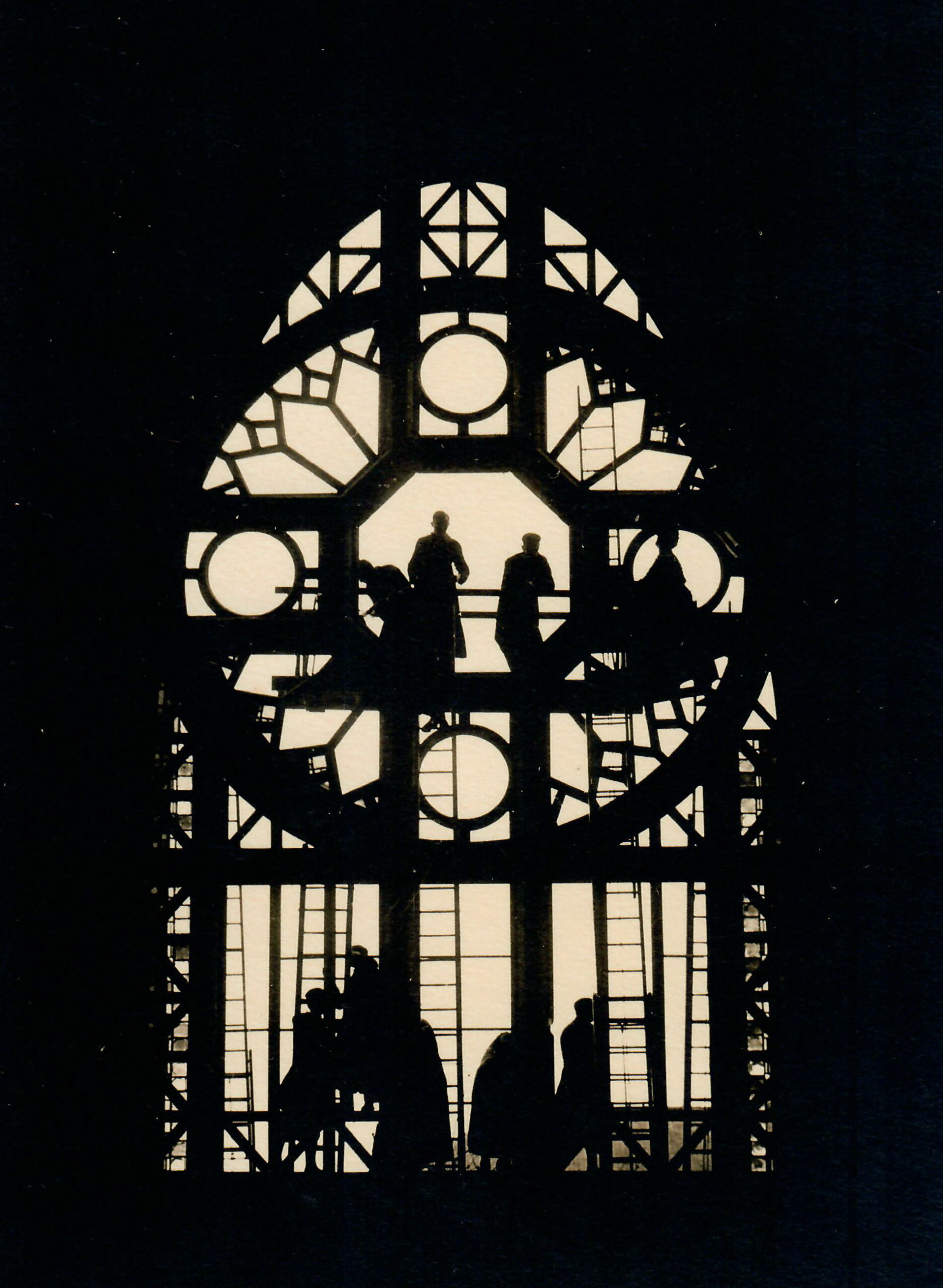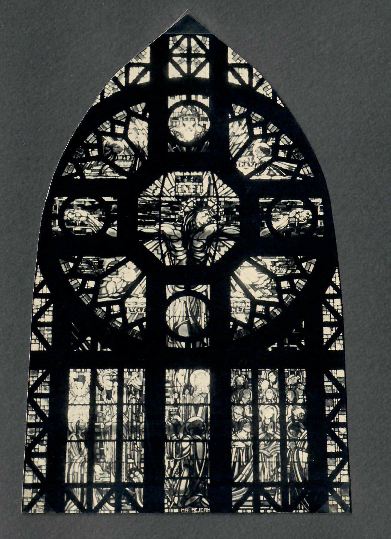 Verrière occidentale du Christ en croix (©Archives diocésaines de Nantes, 2Y016-133). Cette verrière a été déposée.