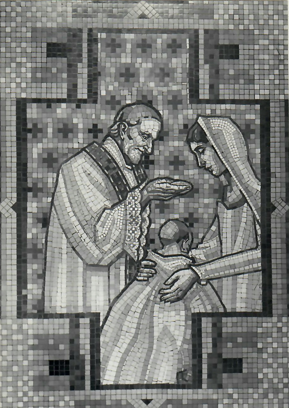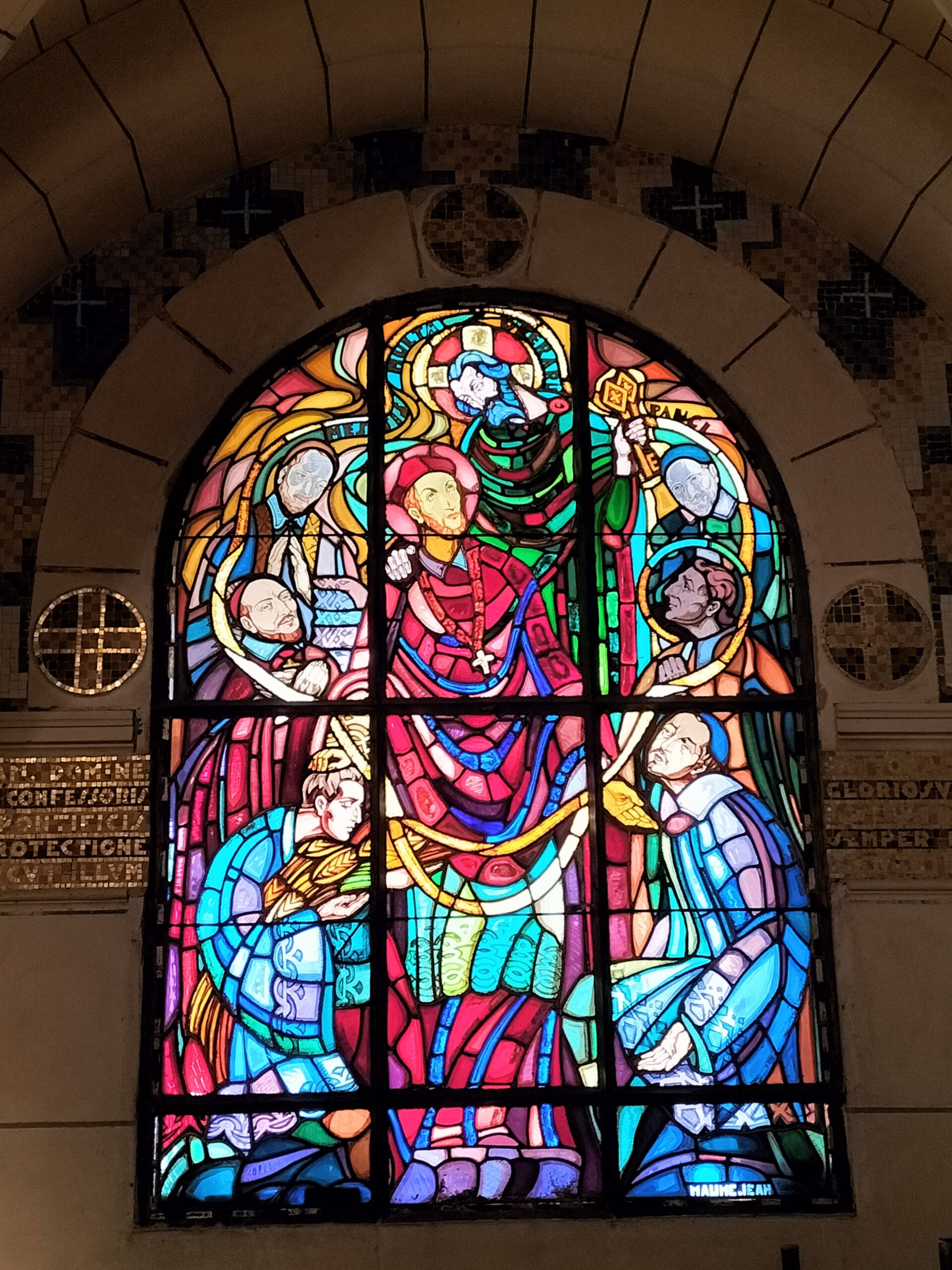 La maison Mauméjan a réalisé l’ensemble des vitraux et des mosaïques qui décorent l’intérieur de la chapelle, notamment les mosaïques des 7 sacrements qui se succèdent sur l’allée centrale en remontant vers le maître-autel.