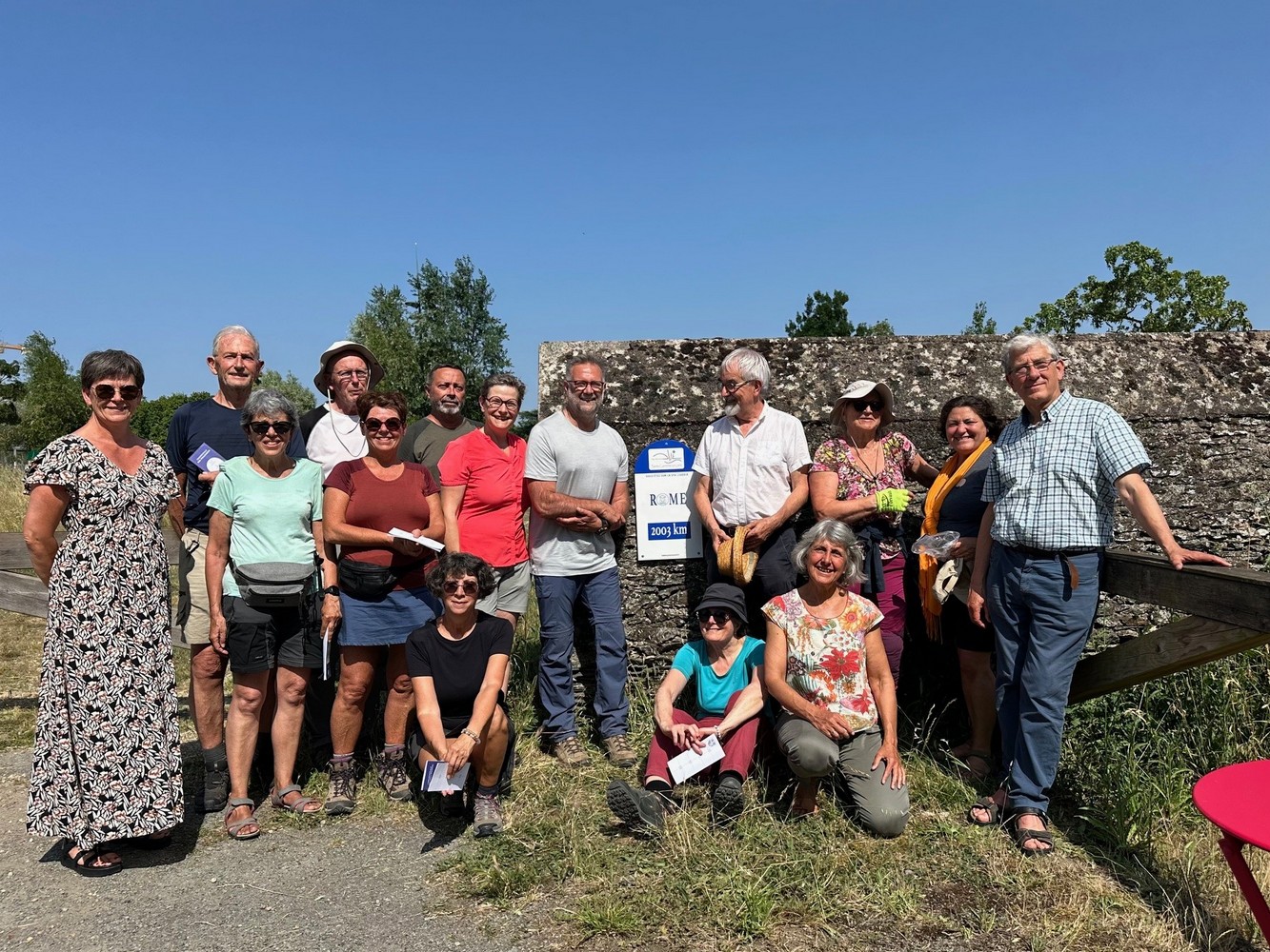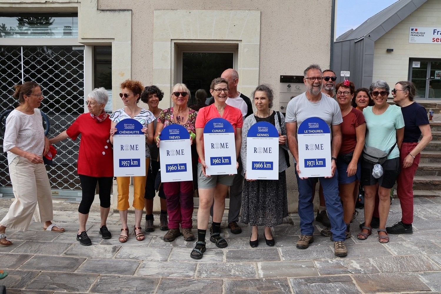Au fil des kilomètres et des villes traversées – Sainte-Luce, Mauves, Thouaré – certains nous ont quittés. Finalement, nous nous sommes retrouvés à 11 pour marcher ensemble jusqu’à Saumur. Neuf d’entre nous ont poursuivi jusqu’à Besançon. Mais tout au long du chemin, d’autres pèlerins nous ont rejoints pour une journée ou deux. Chaque jour, nous avions des invités : membres d’associations pèlerines d’Anjou, de Touraine, du Centre-Val de Loire… Même des marcheurs de la voie de Vézelay nous ont accueillis.
