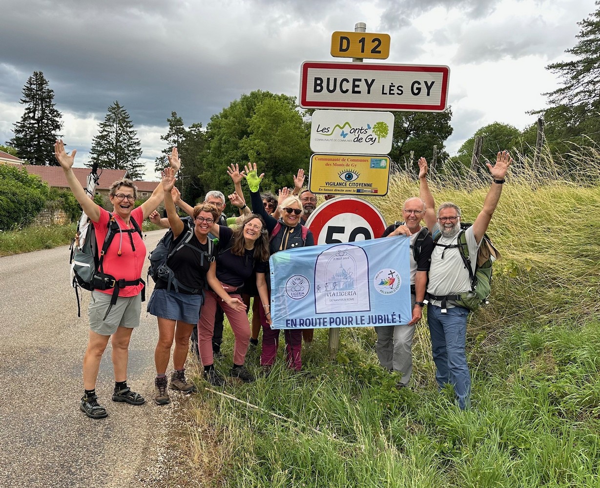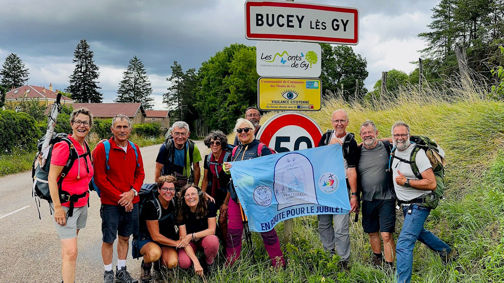 Notre petit groupe de neuf a marché jusqu’à Besançon, un peu après le point de jonction avec la Via Francigena, à Bucey-lès-Gy. C’est là que nous avons passé le relais à la deuxième équipe, partie le 9 juillet. Nous les avons accompagnés sur les hauteurs de Besançon, jusqu’à une petite chapelle tenue par les franciscains, où ils ont entamé leur traversée du Jura. Le week-end dernier, ils contournaient le lac Léman, avant d’attaquer la montée vers le col du Grand-Saint-Bernard. »