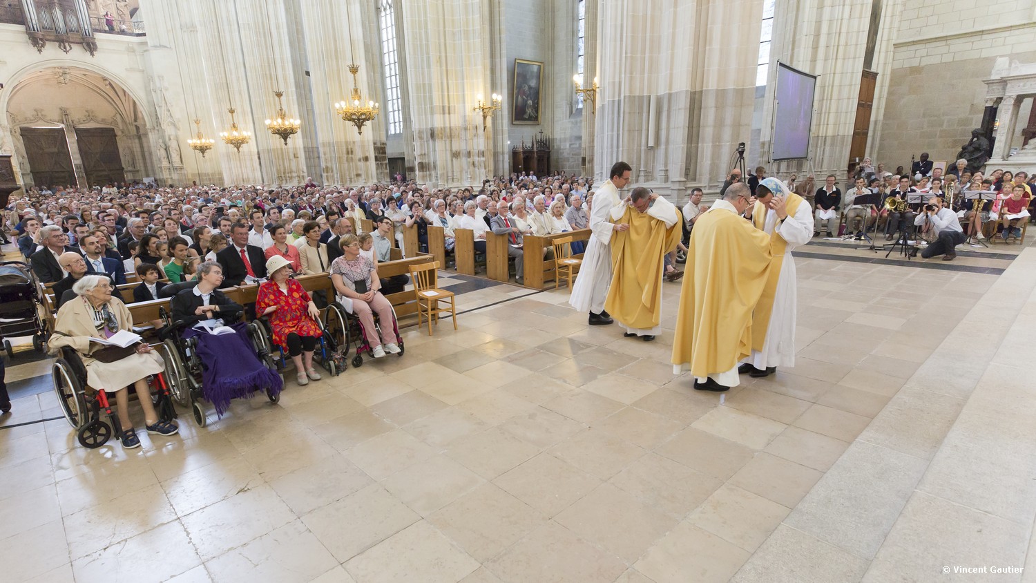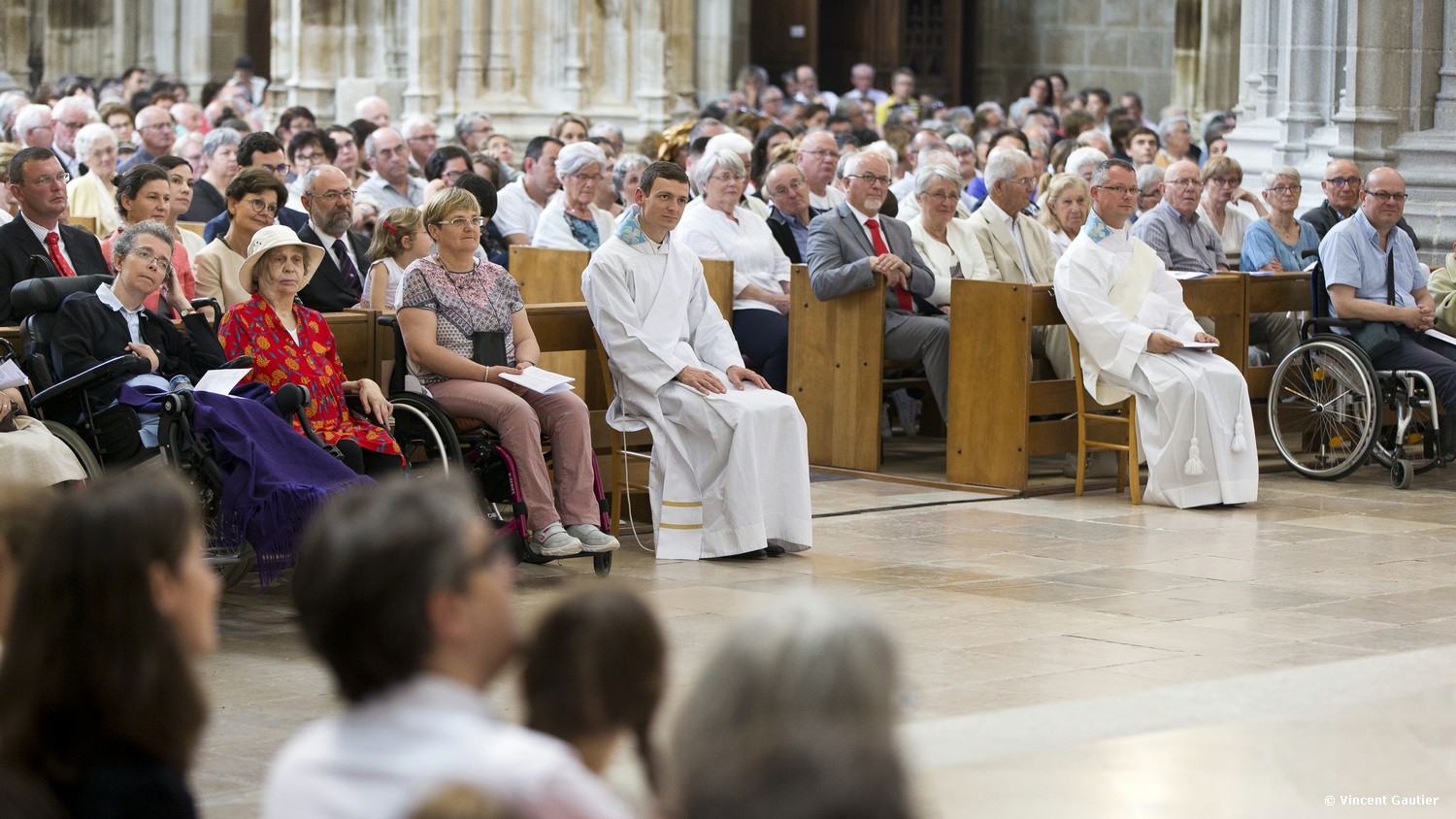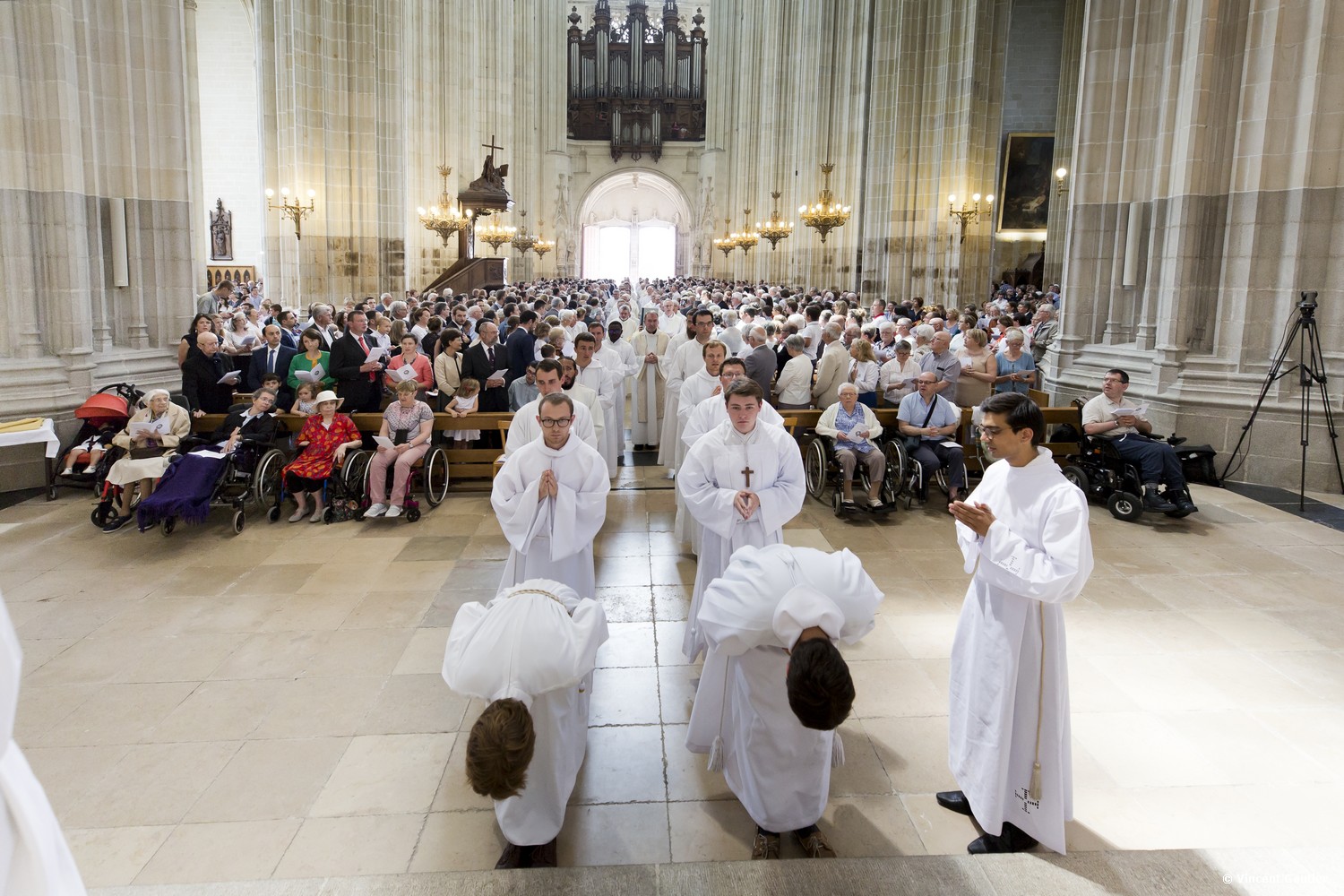 L’évêque de Nantes a terminé en s’adressant aux jeunes : « Alors, oui à cause de tout cela, j’ose appeler à être prêtre aujourd’hui. » S’appuyant sur l’Évangile il a ajouté : « Ne dites pas, chers jeunes, mon existence ne vaut que cinq pains et deux poissons. Sachez-le bien, à la suite du Christ quand, dans une vie, il y a cinq pains et deux poissons, tous peuvent manger à leur faim. Depuis que le Christ nous a laissé l’Eucharistie, nous savons où coule la source de la vie, de l’amour et la paix. Alors, chers jeunes qui êtes présents ici, n’ayez pas peur, répondez à l’appel du Christ. Dieu n’enlève rien. Il donne tout ! »