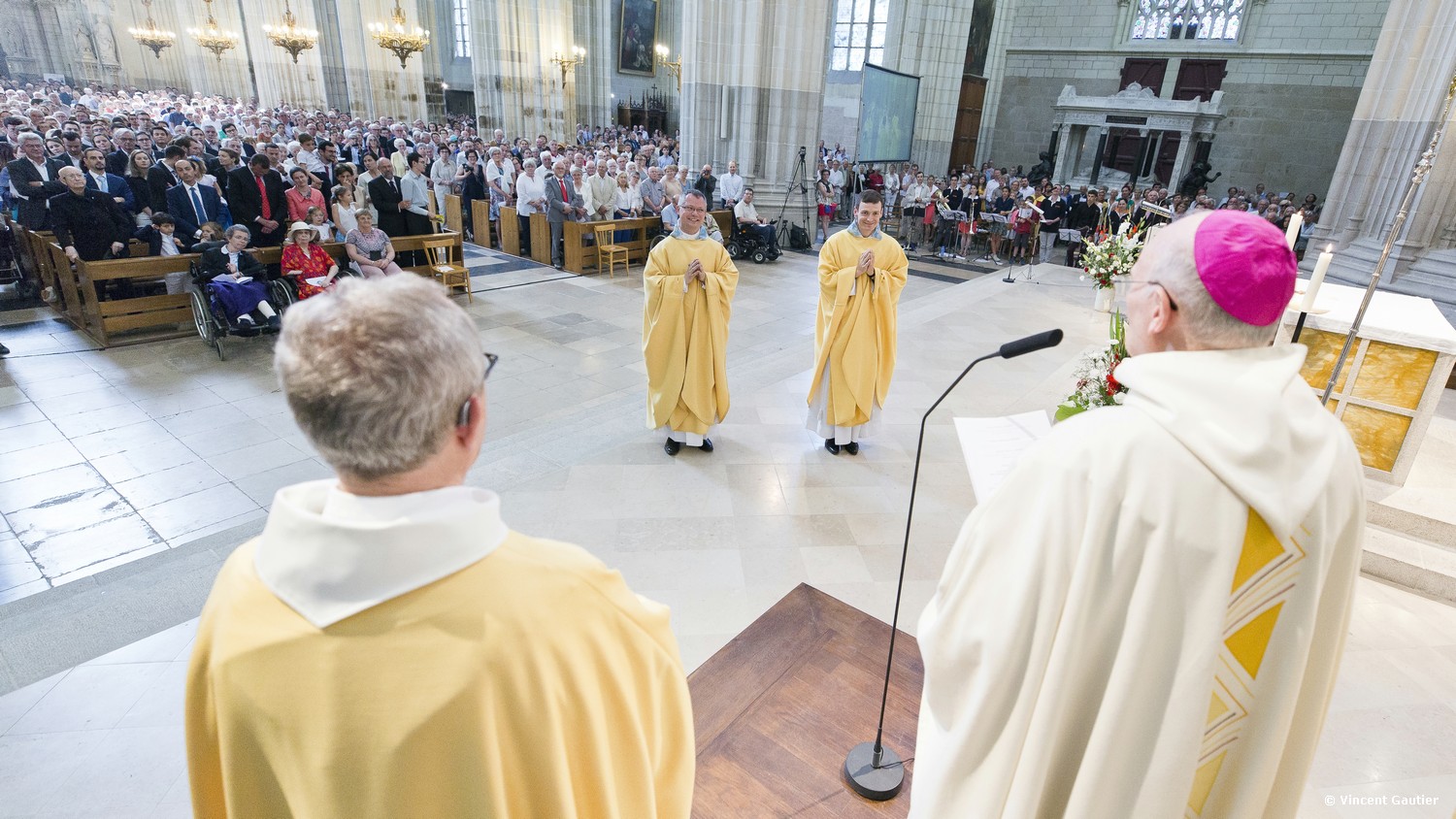 Nicolas Harel et Thomas Cruchet ont été ordonnés prêtres pour le diocèse de Nantes, le dimanche 23 juin, par Mgr Jean-Paul James. Voici, en quelques lignes et en photos les moments forts de cette ordination.