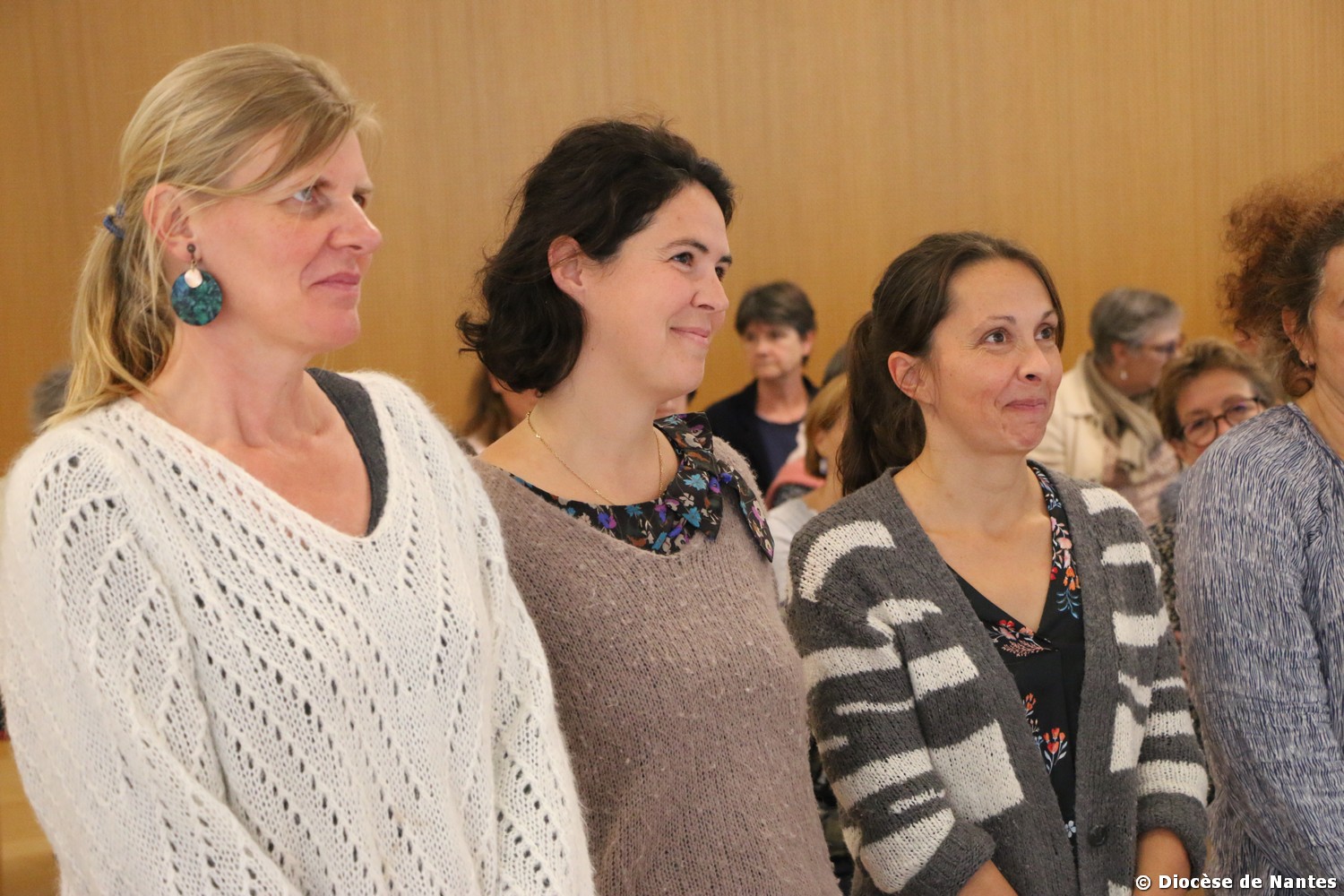 - des laïcs en mission ecclésiale : Marie Bogé (ACE 44), Céline Bonnet (SDPC), Sylvie Chicaud (SDPC), Anne Detchessahar (Pastorale des Migrants), Marguerite Ducoin (Abri des Familles – Pastorale des Migrants), Mina Grais (Pastorale des Gens du Voyage), Elenn Haberkorn (JOC Nantes et ACE 44), François d’Hautpoul (SDPLS), Mathilde Hidden (Service des Vocations), Cécile Marnier (Abri des Familles – Pastorale des Migrants) et Estelle Meynial (AEP).