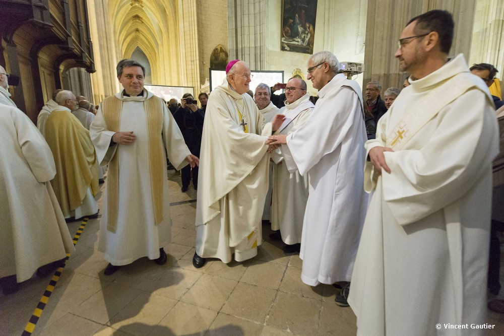 « Etre évêque à Nantes, avec vous, n’a pas été monotone, je vous l’assure ! » a lancé Mgr James en début de célébration, avant de se réjouir de cette vitalité et de l’entrain qu’il a eu plaisir à découvrir à travers l’ensemble du diocèse, particulièrement lors des visites pastorales.