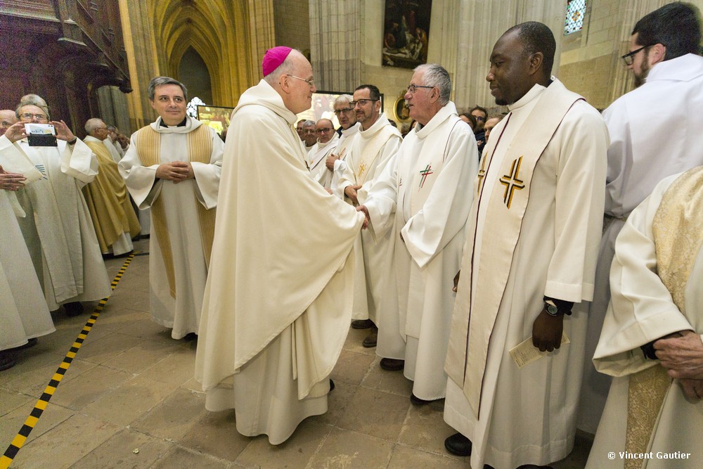 L’émotion était palpable à l’heure de cet au-revoir, particulièrement en fin de célébration. Mgr James a parcouru le déambulatoire afin de saluer personnellement les prêtres et diacres, la chorale multiculturelle de Festifrat entonnait un chant d’action de grâce largement repris par l’assemblée.