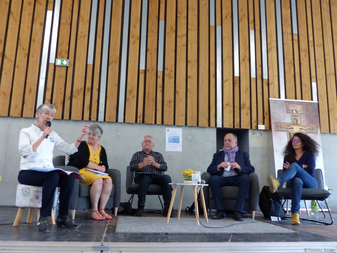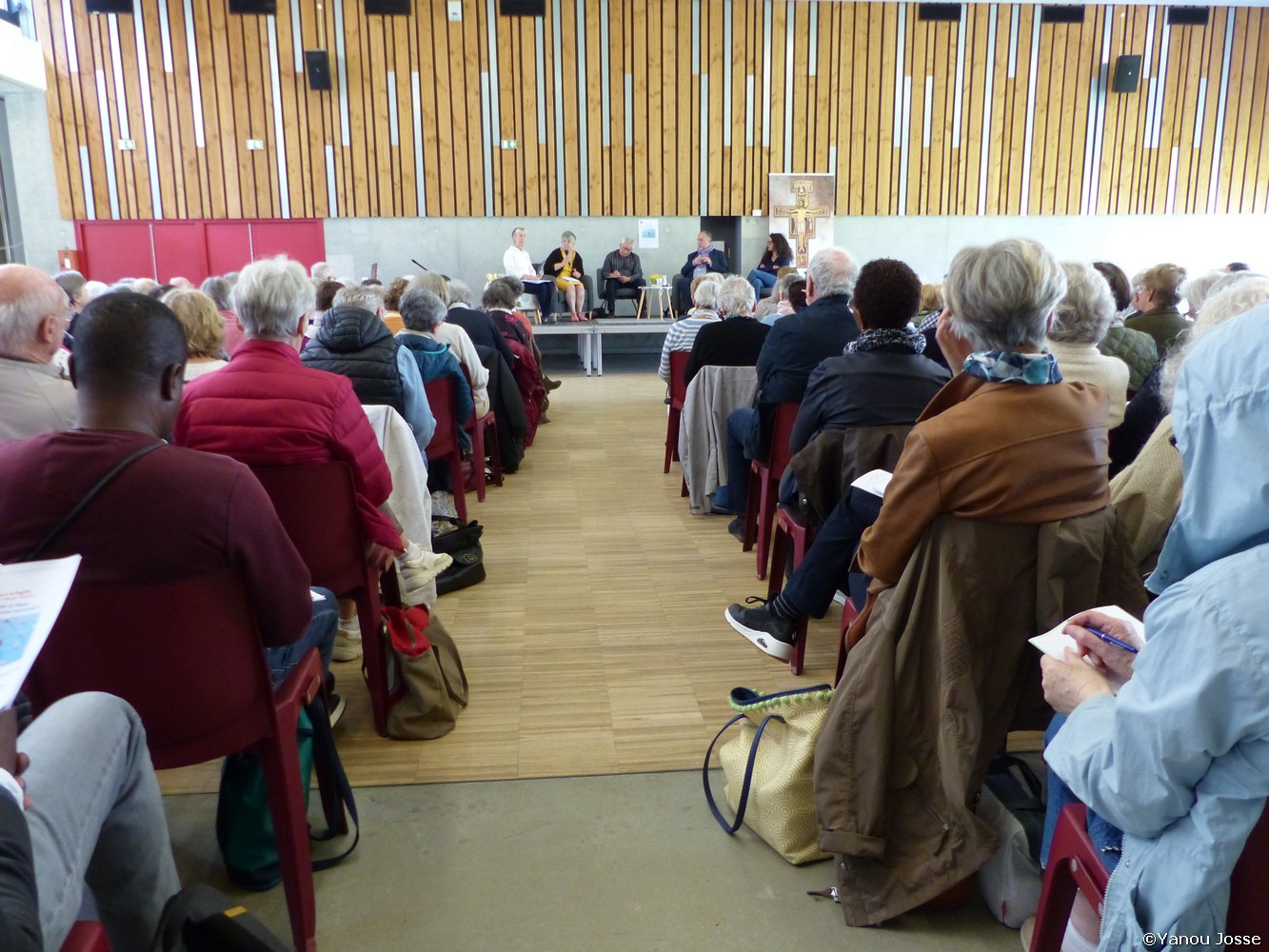 La table ronde représentait quatre réalités institutionnelles ou associatives, toutes engagées au service de la personne et de son entourage : l’association Constellation (entraide entre parents d’enfants handicapés) représentée par Mme Louragini, le réseau ALFa-Répit (relais des aidants) représenté par Mme Mallard, directrice territoriale, la consultation d’éthique clinique (CEC) avec le Dr Miguel Jean du CHU de Nantes et le Père Jean-Marie Onfray, ancien responsable national de la Pastorale de la santé à la Conférence des Évêques de France.